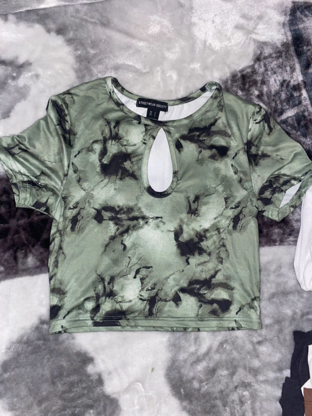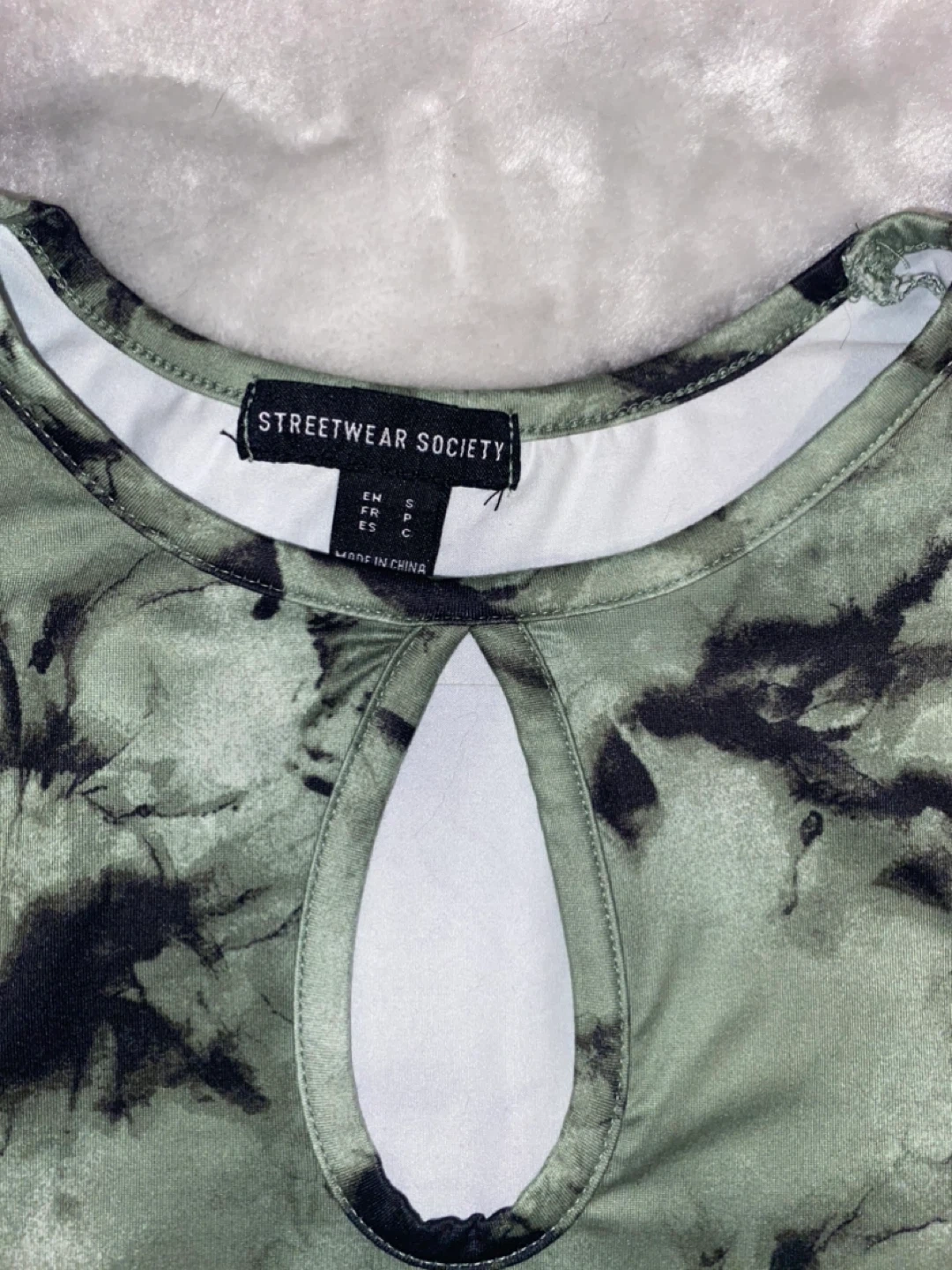 Streetwear Society top! Size small with a green and black tie-dye pattern