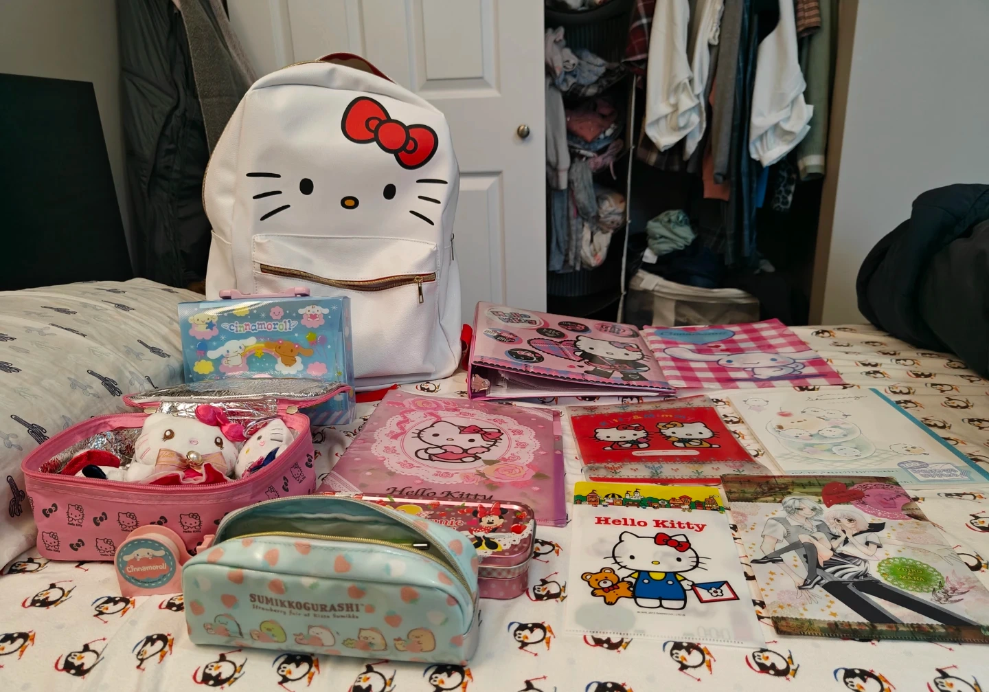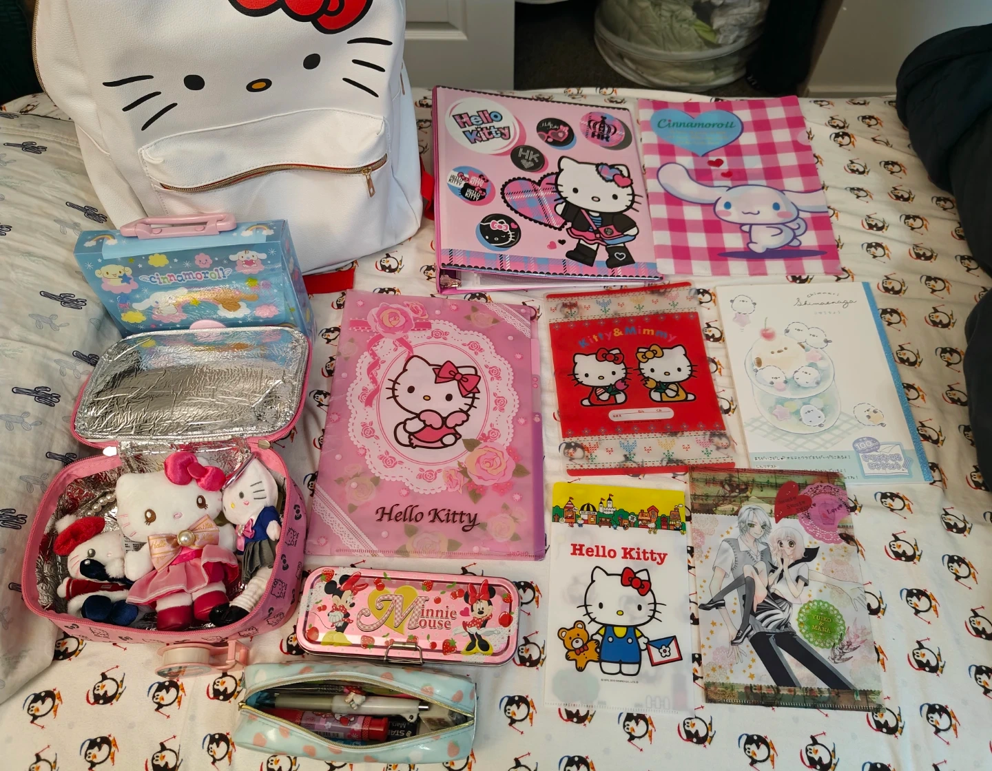 Hello Kitty Backpack is brand new from Hot Topic while the other stationery set are from Japan years back but in good condition.