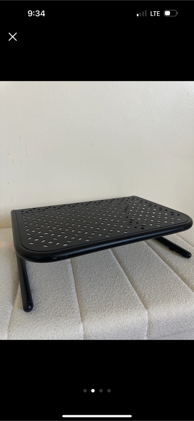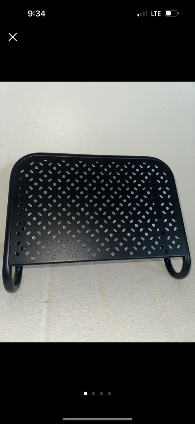 Selling a gently used black metal monitor stand. It's sturdy and in great shape, perfect for raising your monitor to a more comfortable viewing height. Great for a home office setup!