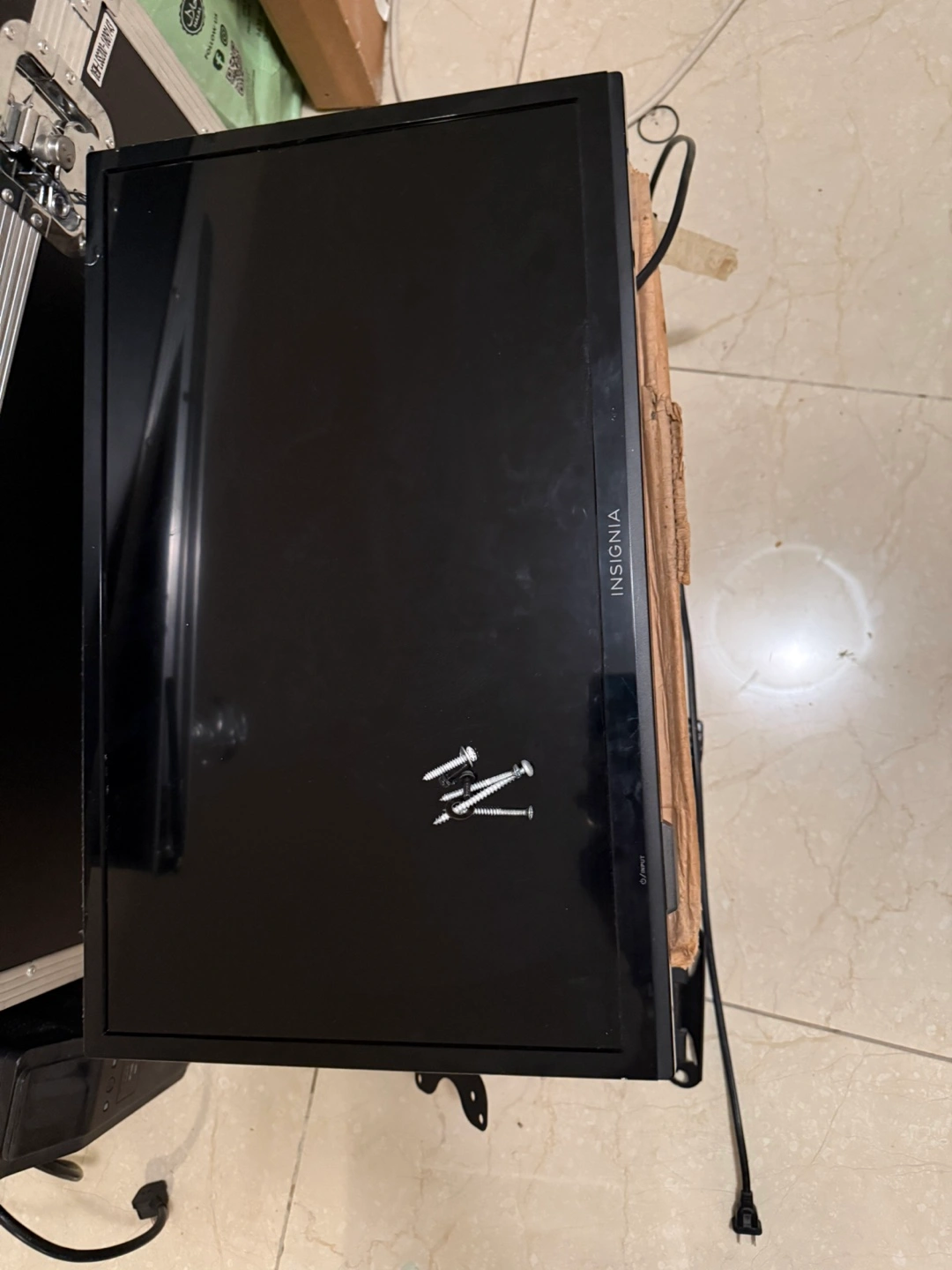 Mixed Items: GE AC, Insignia TV, Eagle Cane, TV Stand, Chair