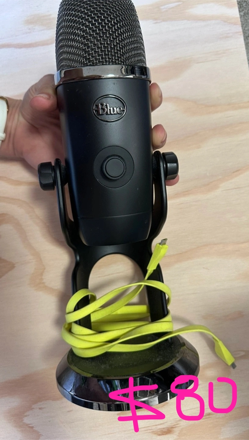 Selling a Blue Yeti USB microphone in the blackout edition. It's in good condition and comes with its yellow USB cable. Perfect for podcasting, streaming, or recording music!