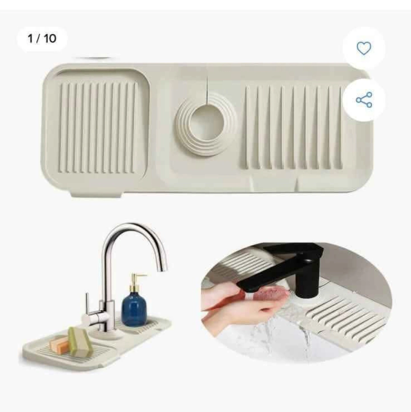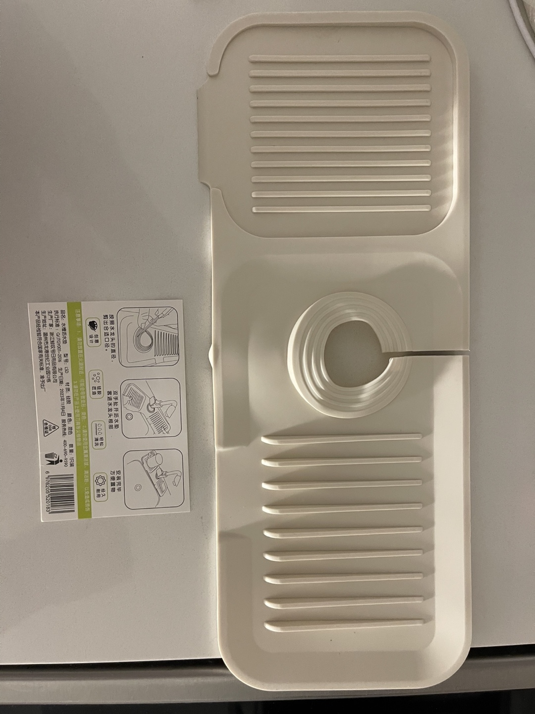 This is a silicone sink splash guard that's perfect for keeping your kitchen tidy! It's white and measures 45*14cm. It helps prevent water from splashing while you're doing dishes.