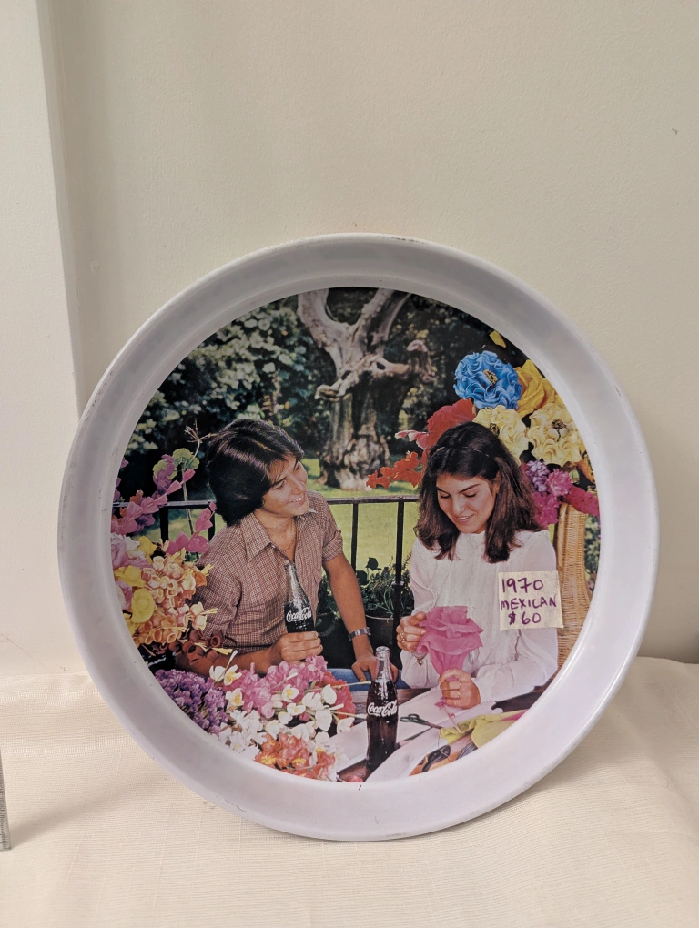 Vintage Mexican 1970s Coca-Cola Serving Tray Couple in garden