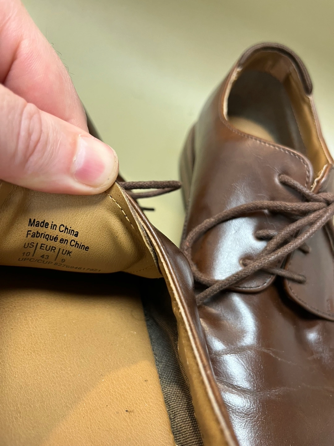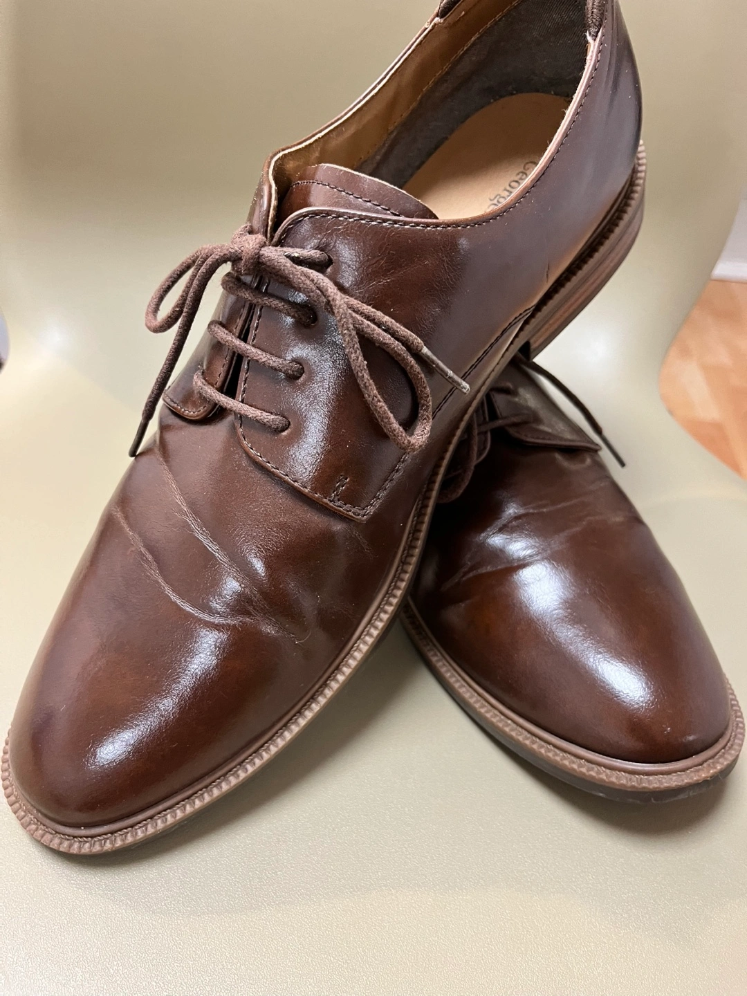 82Selling a pair of brown leather dress shoes from George. They are in good condition and are a size 10 US.