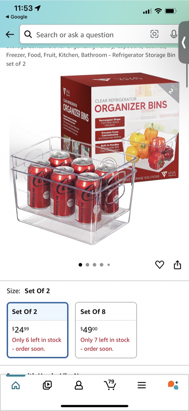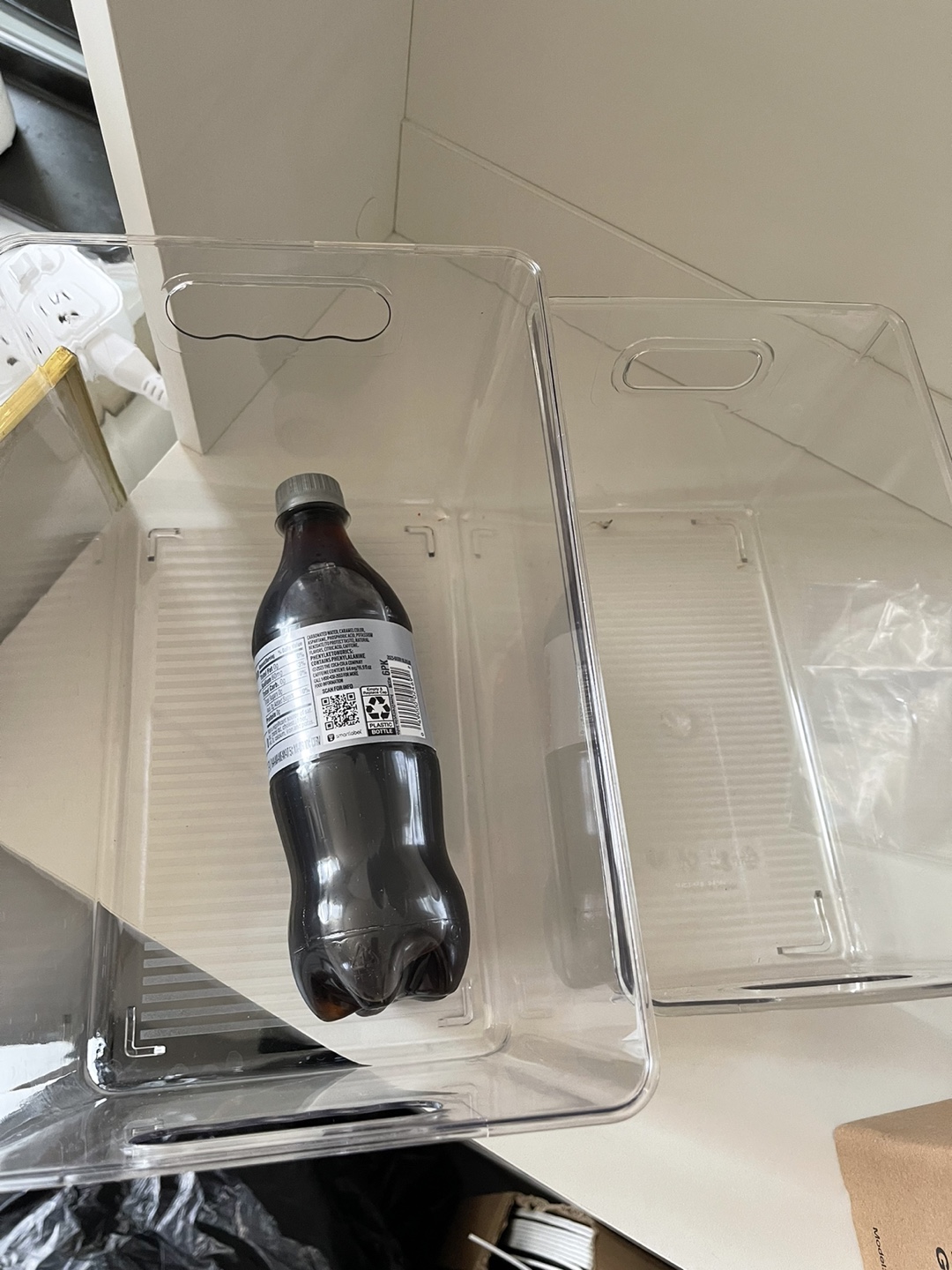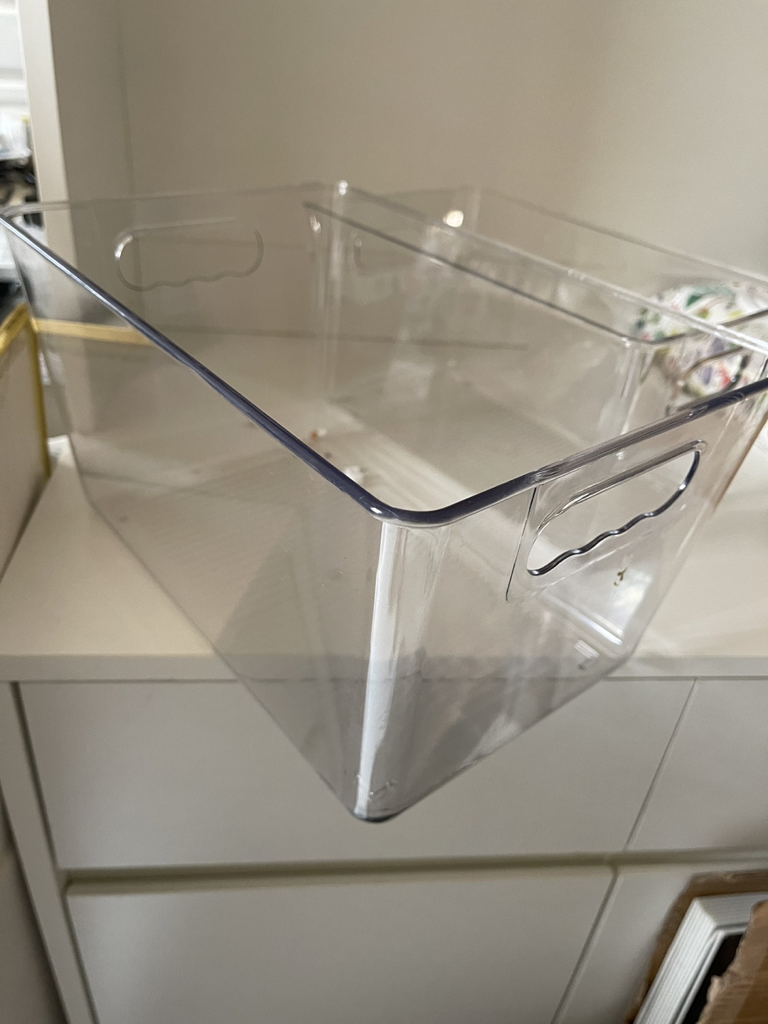 These clear refrigerator organizer bins are perfect for keeping your fridge tidy! They're great for storing food, drinks, or anything else you need to organize. They have handles to make it easy to pull them out. These are in excellent condition and ready for a new home!
