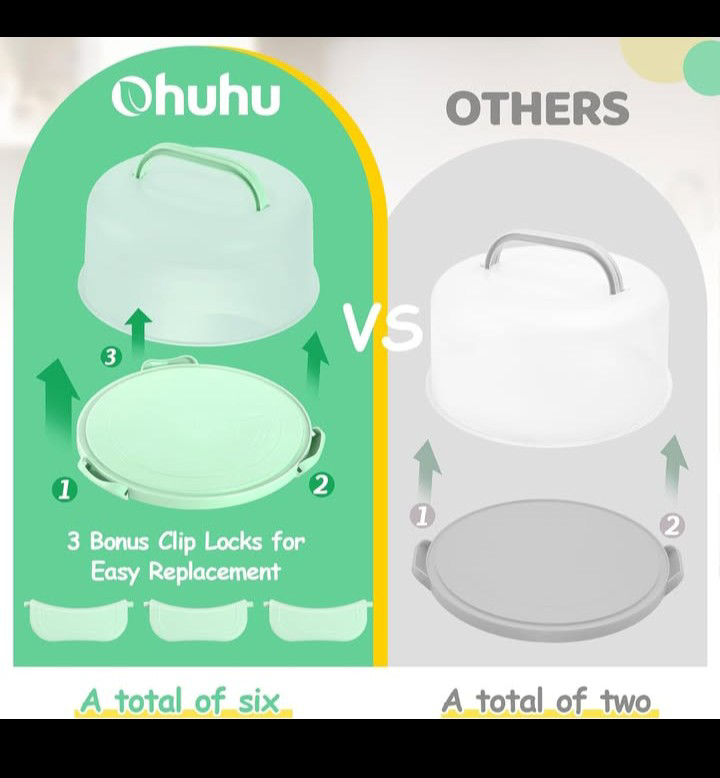 Keep your cakes and cupcakes fresh and secure with this Ohuhu cake carrier! This carrier is refrigerator-safe, so you can keep your cakes fresh and odor-free. It also features extra muffin cup holders, so you can use it to display or transport your cupcakes. The foldable embedded handles also make it easy for compact storage
