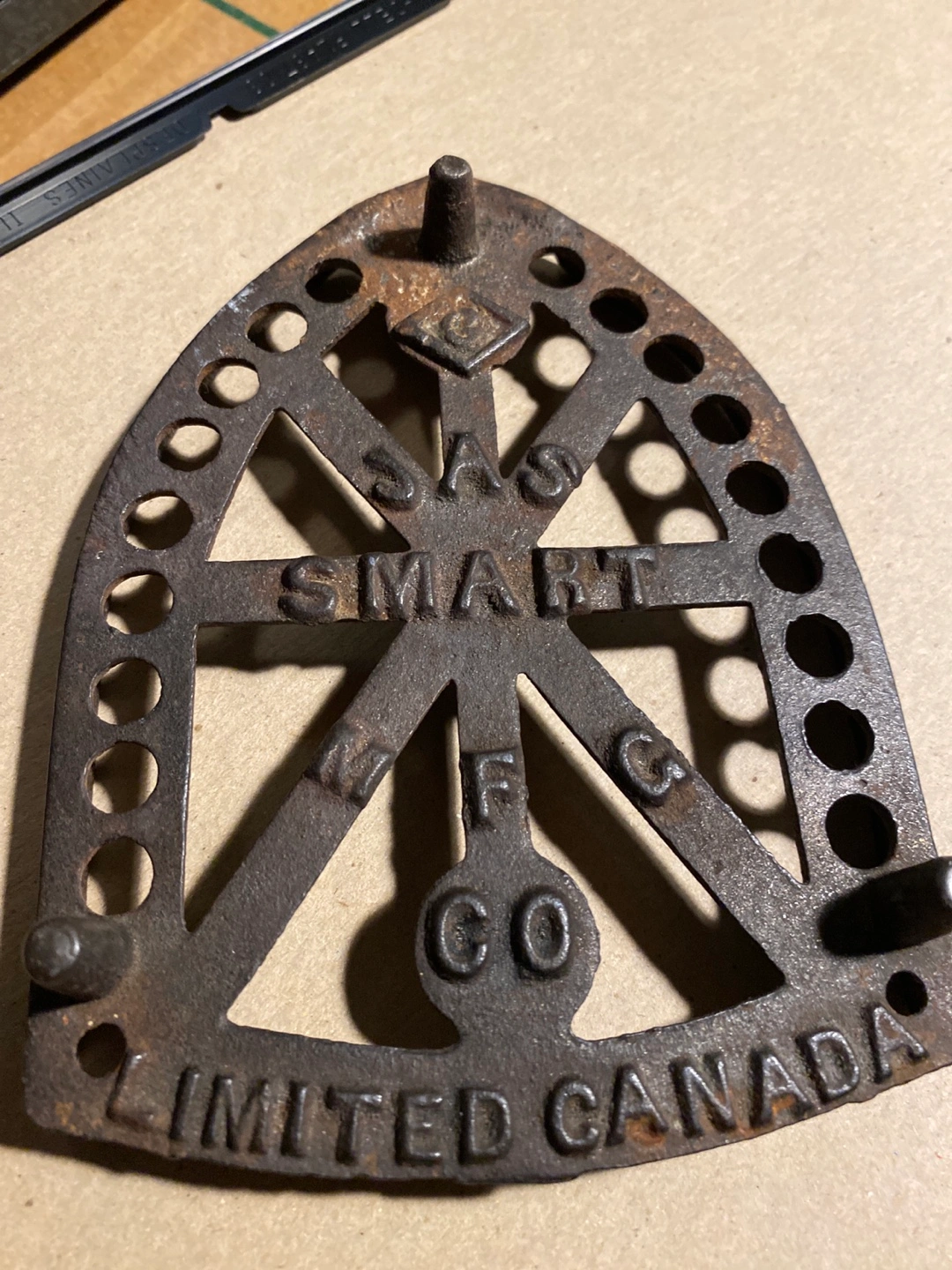Selling a vintage trivet from Smart Mfg Co. It's a unique piece with a cool design. Perfect for adding a touch of history to your collection.