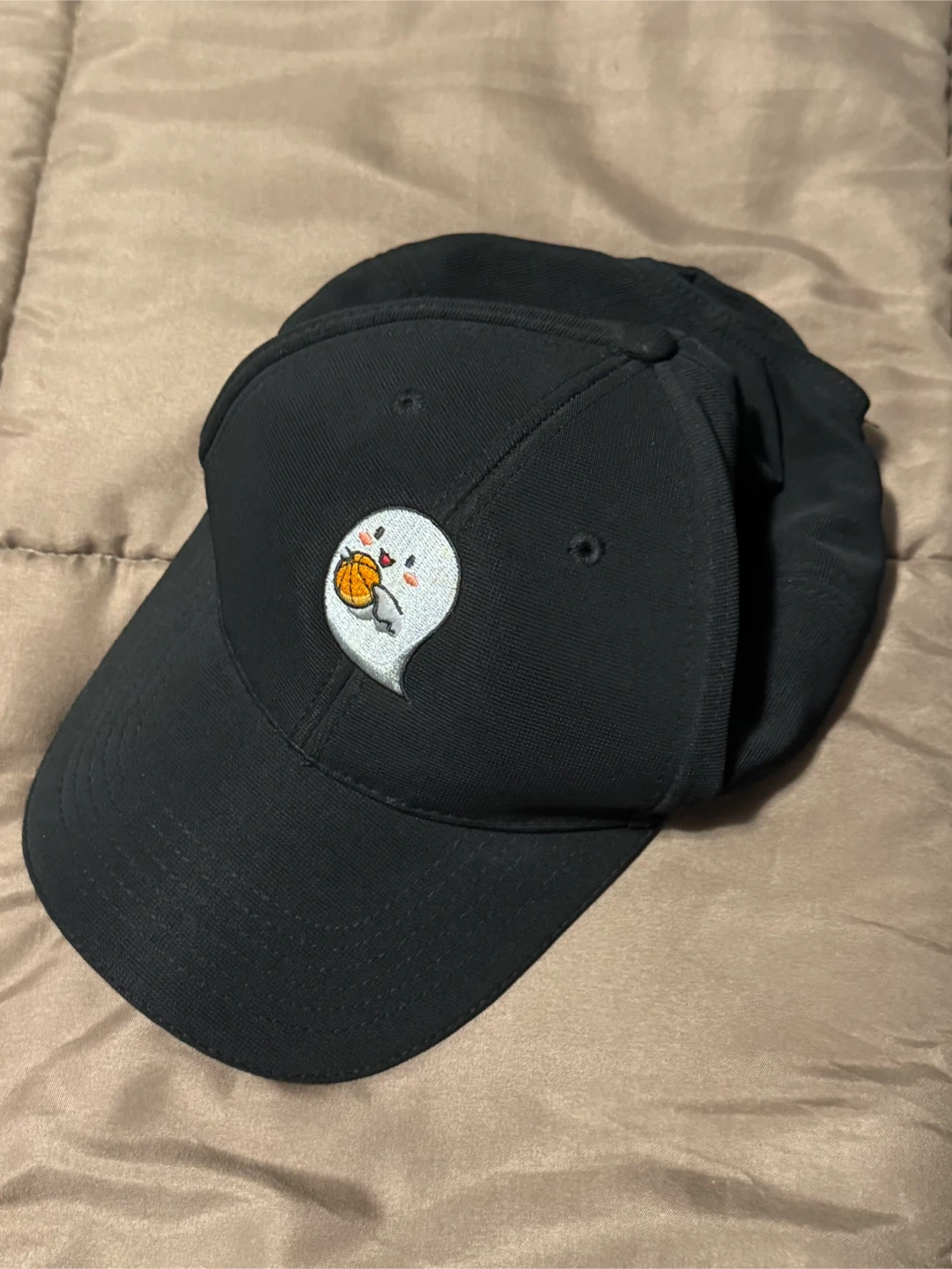 Black Baseball Cap with Cute Ghost Basketball Design