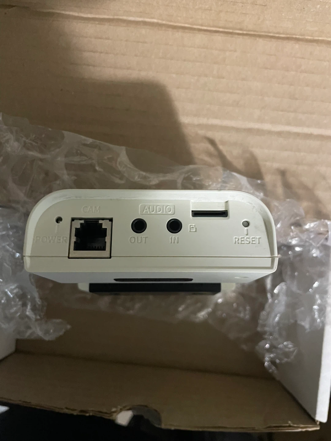 Selling a Hanwha XNB-6001 network camera. This camera is in great condition and comes in its original box. It supports DC 12V and has various ports including network, audio in/out, and micro USB. Perfect for setting up a reliable surveillance system!