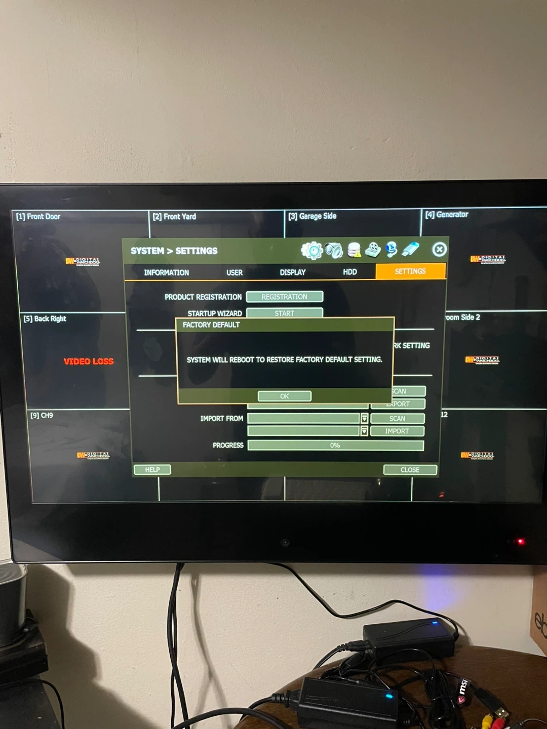 Selling a Digital Watchdog DW-VP12-8P NVR video recorder in great condition! It comes with the brand new power supply. This system will reboot to restore factory default settings. The screenshots show the startup wizard and system settings. Feel free to ask any questions!