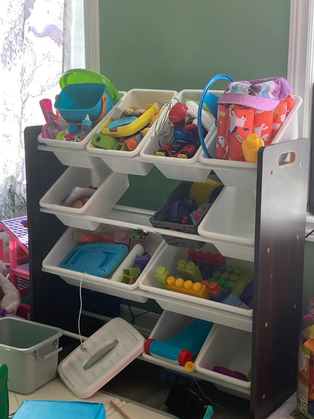Selling a kids toy storage organizer! It has multiple bins for easy sorting and access. Great for keeping playrooms tidy and organized. Perfect for storing all sorts of toys and accessories