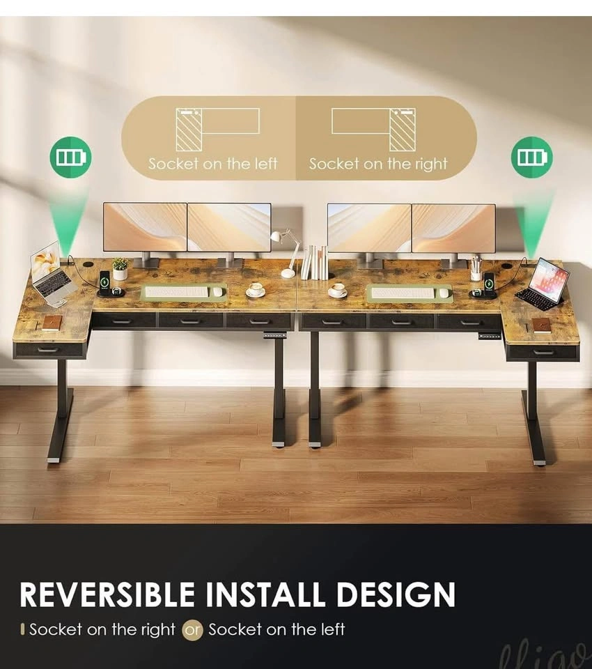 Brand New - L Shaped Electric Standing Desk w/ Drawers
