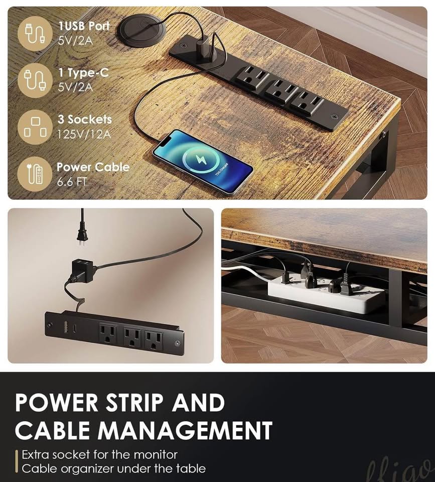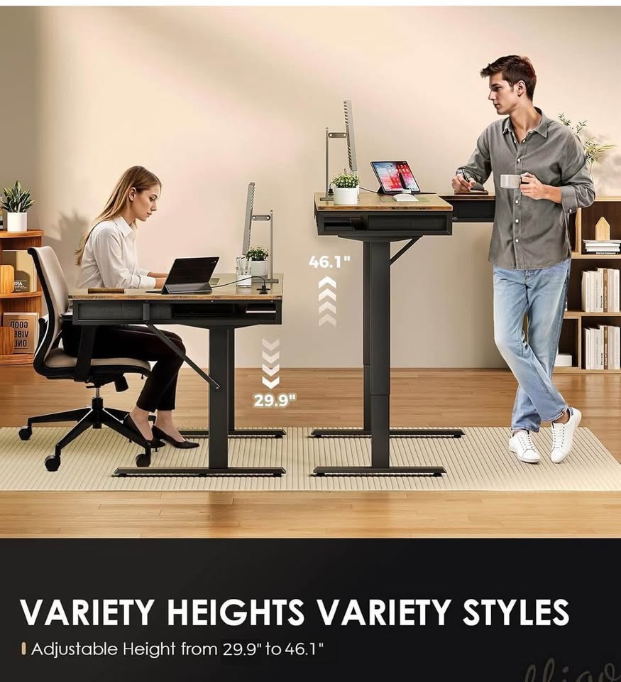 ✅ Electric Height Adjustment – Switch between sitting and standing effortlessly with the electric lift system (29.9”–46.1”). Features 3 preset memory buttons plus built-in 3 outlets, 1 USB, and 1 Type-C port for convenient charging.