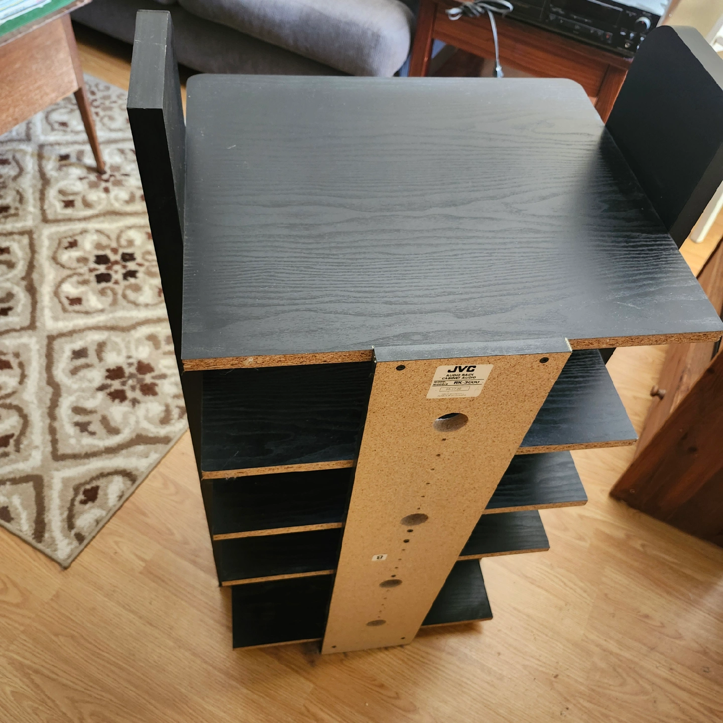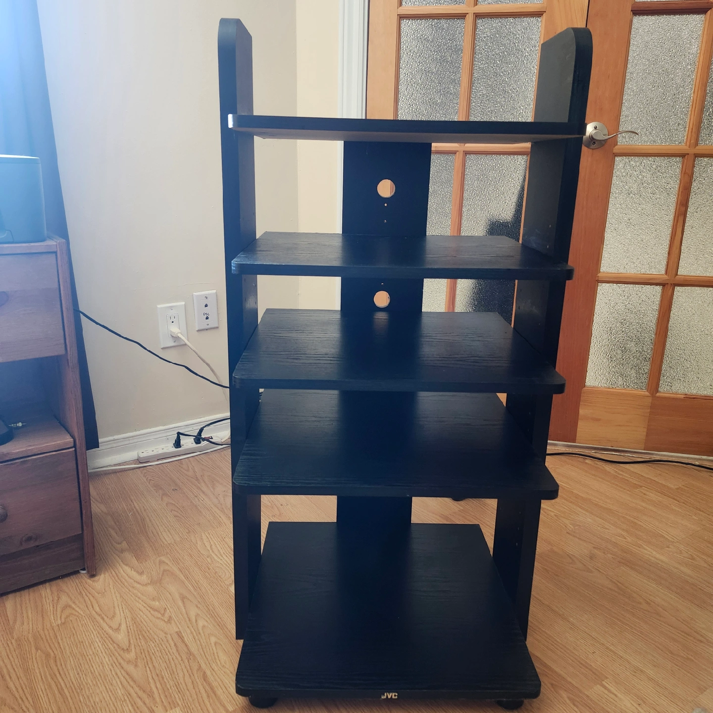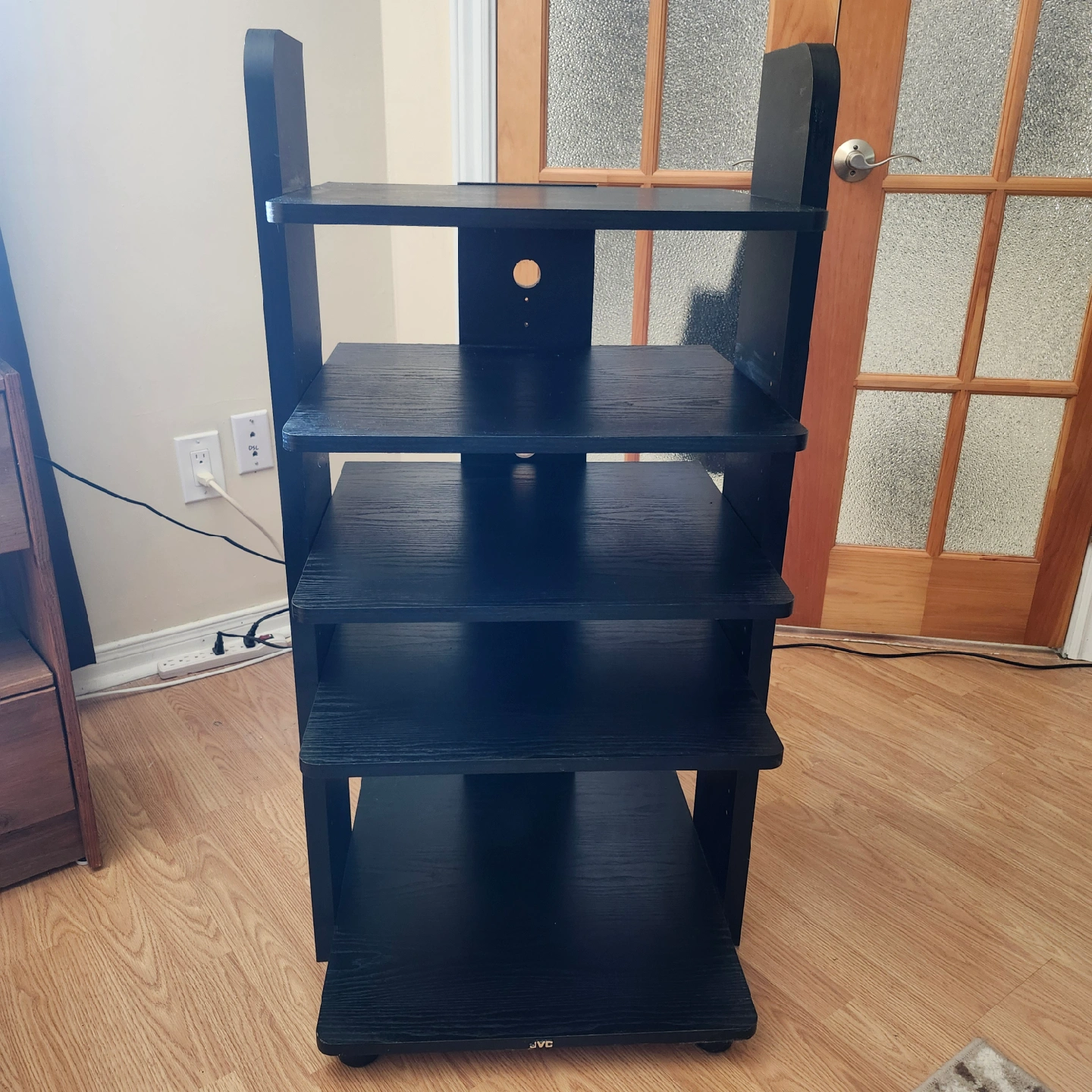 Selling a black JVC audio rack stand. It's perfect for organizing your audio equipment or displaying your favourite collectibles. This stand features multiple adjustable shelves, providing ample space for all your needs