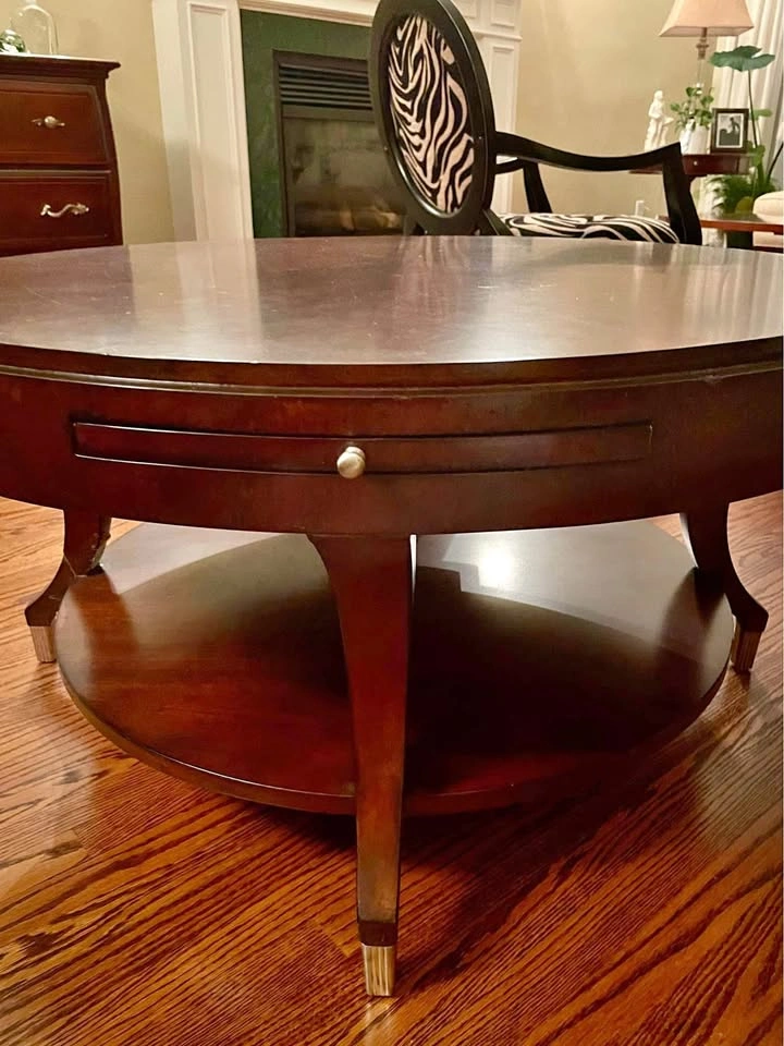 Elegant Round Rich Dark Wood Cocktail Coffee Table