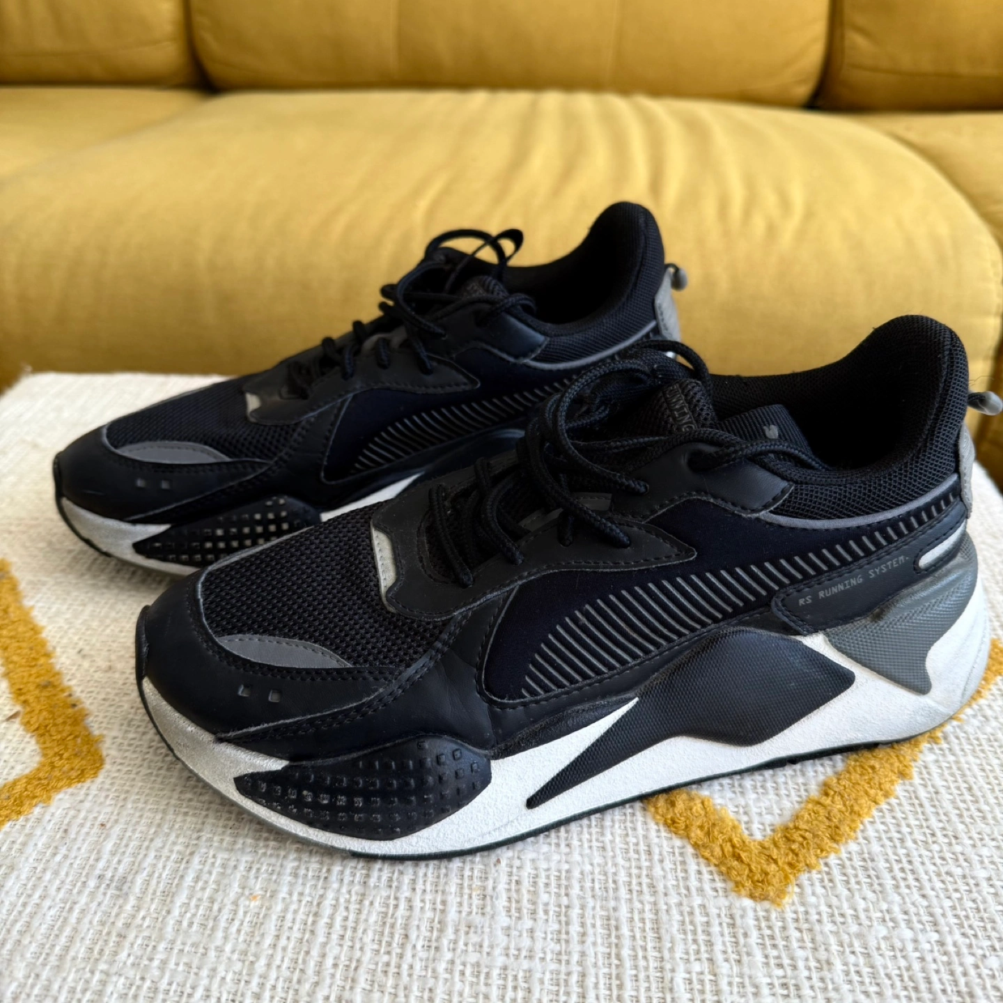 Selling a pair of Puma RS-X Running System sneakers in black. They are in good condition with some wear on the soles. - Size: US 6 YOUTH / LADIES 7.5 ** if listing is still up the item is available ALL SALES FINAL SERIOUS INQUIRES ONLY PLEASE :) PICKUP ONLY - PRIORITY TO QUICK PICKUP AND/OR BUNDLES LOCATION: DOWNTOWN ( RICHMOND/ GEORGE ST) Check my listings for more and follow for new items almost DAILY😀!!!