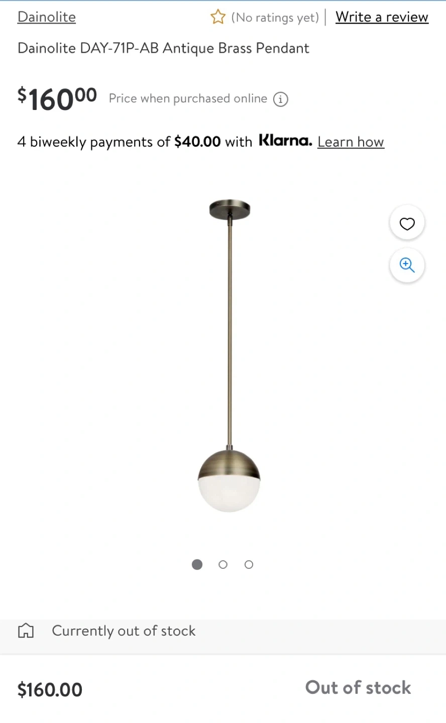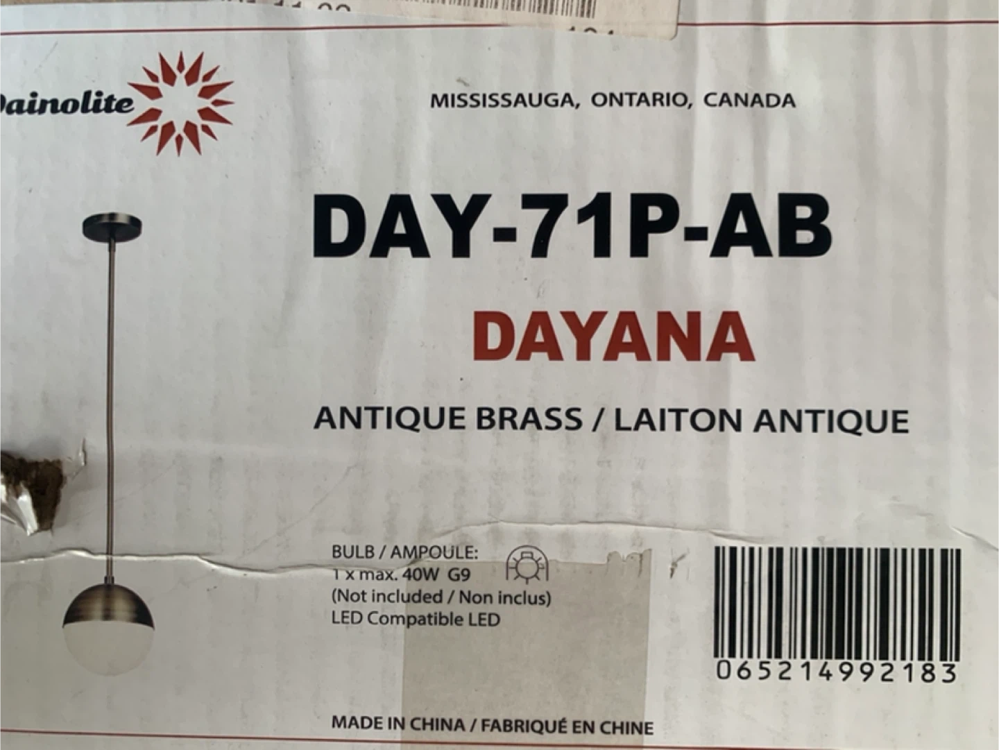 Selling a Dainolite Dayana pendant light in antique brass. It's the DAY-71P-AB model. This stylish pendant is LED compatible. The original box is included! $80