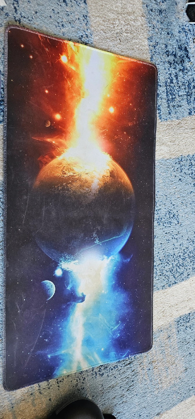 Selling a large gaming mouse pad with a cool planet design! It's in good condition and would be perfect for any gamer looking to upgrade their setup. Offers plenty of space for smooth mouse movements!