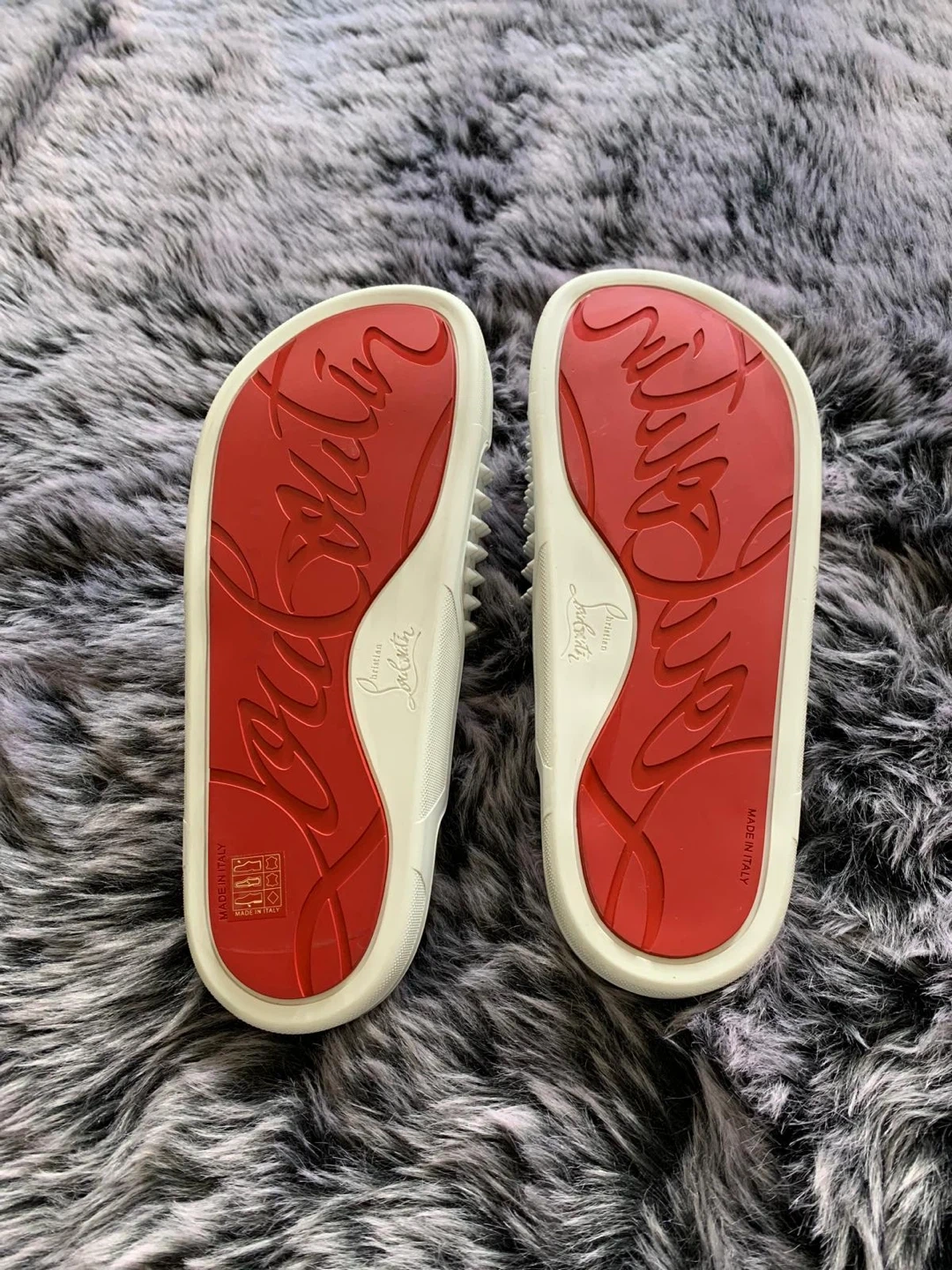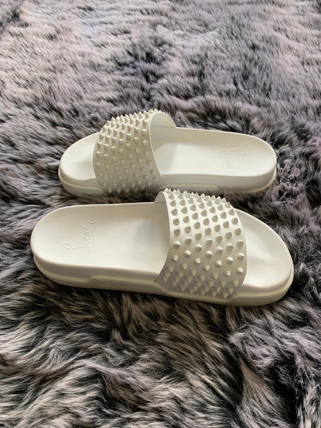 Christian Louboutin White Spiked Slides