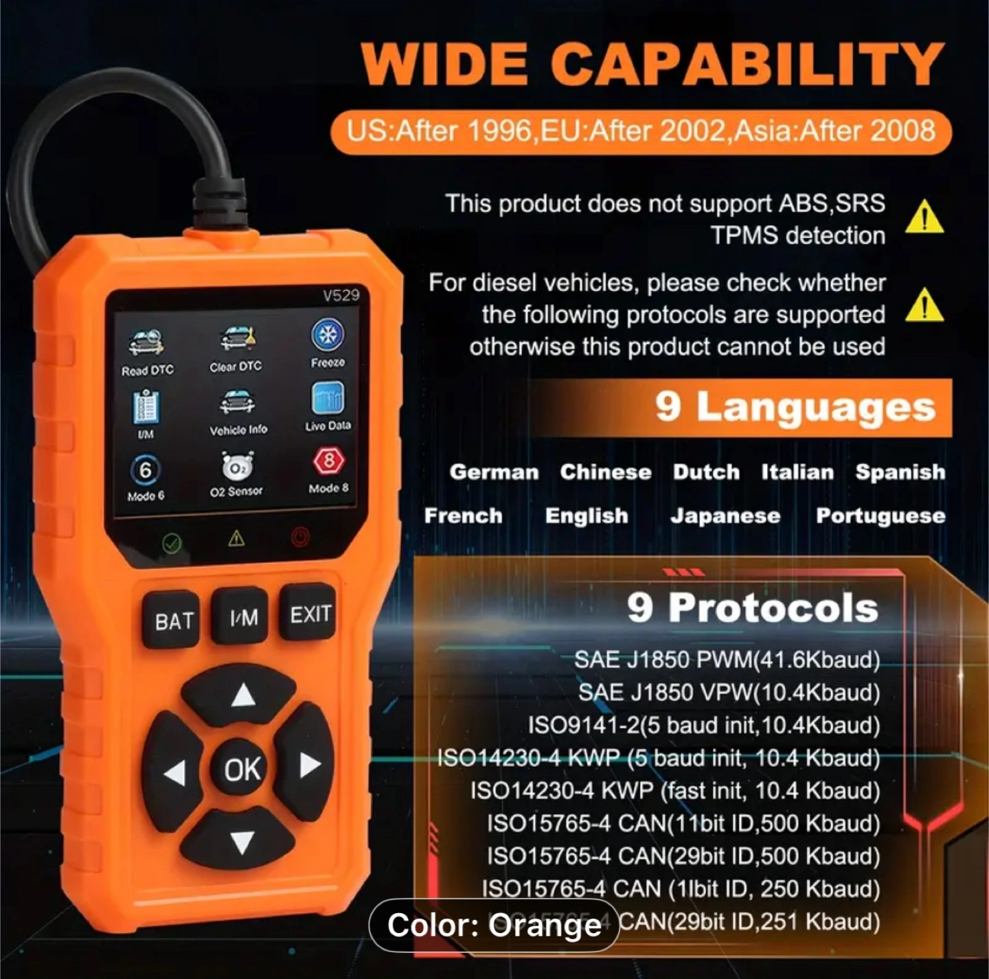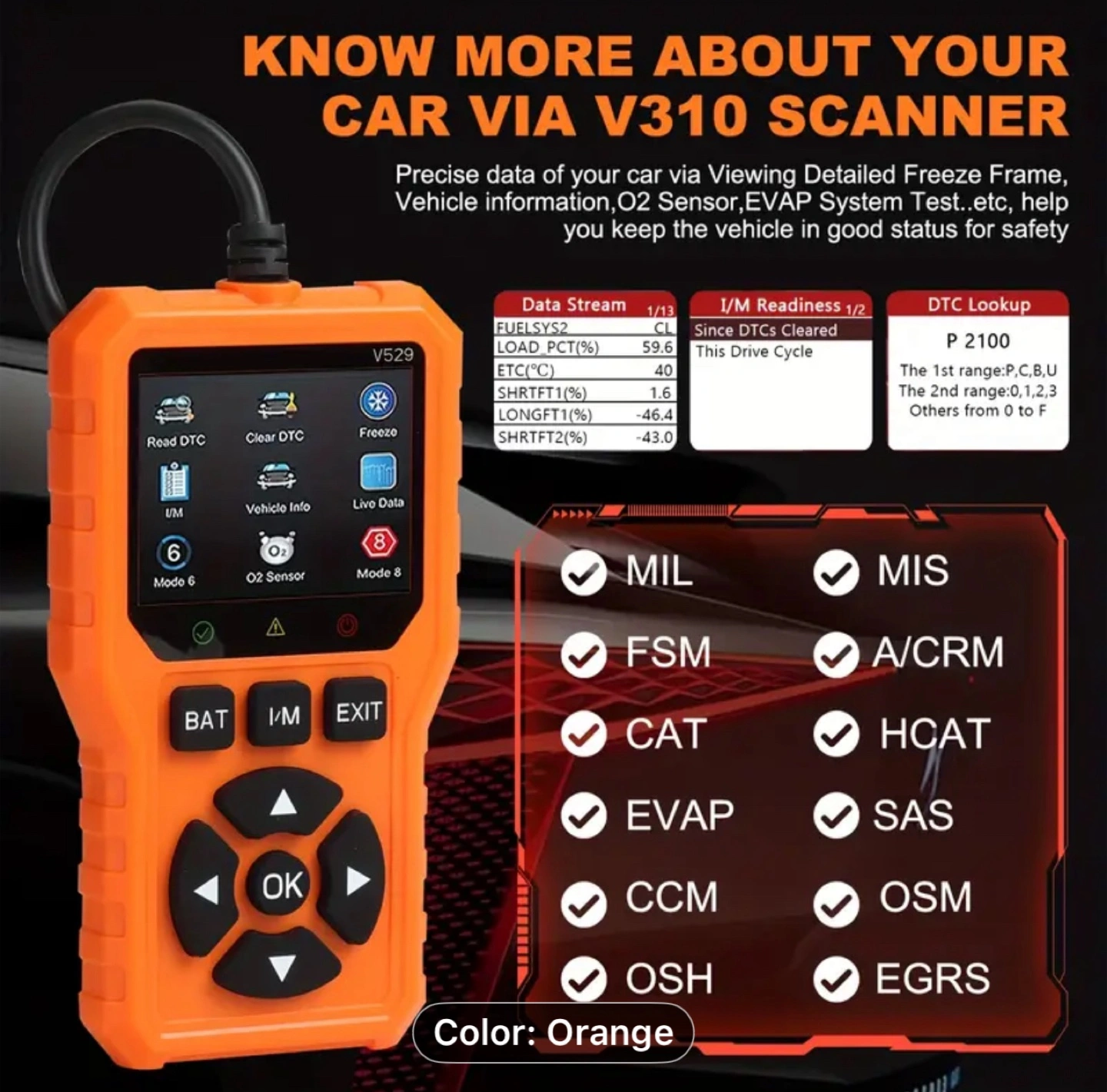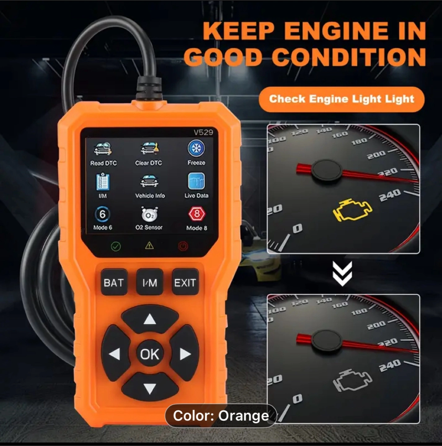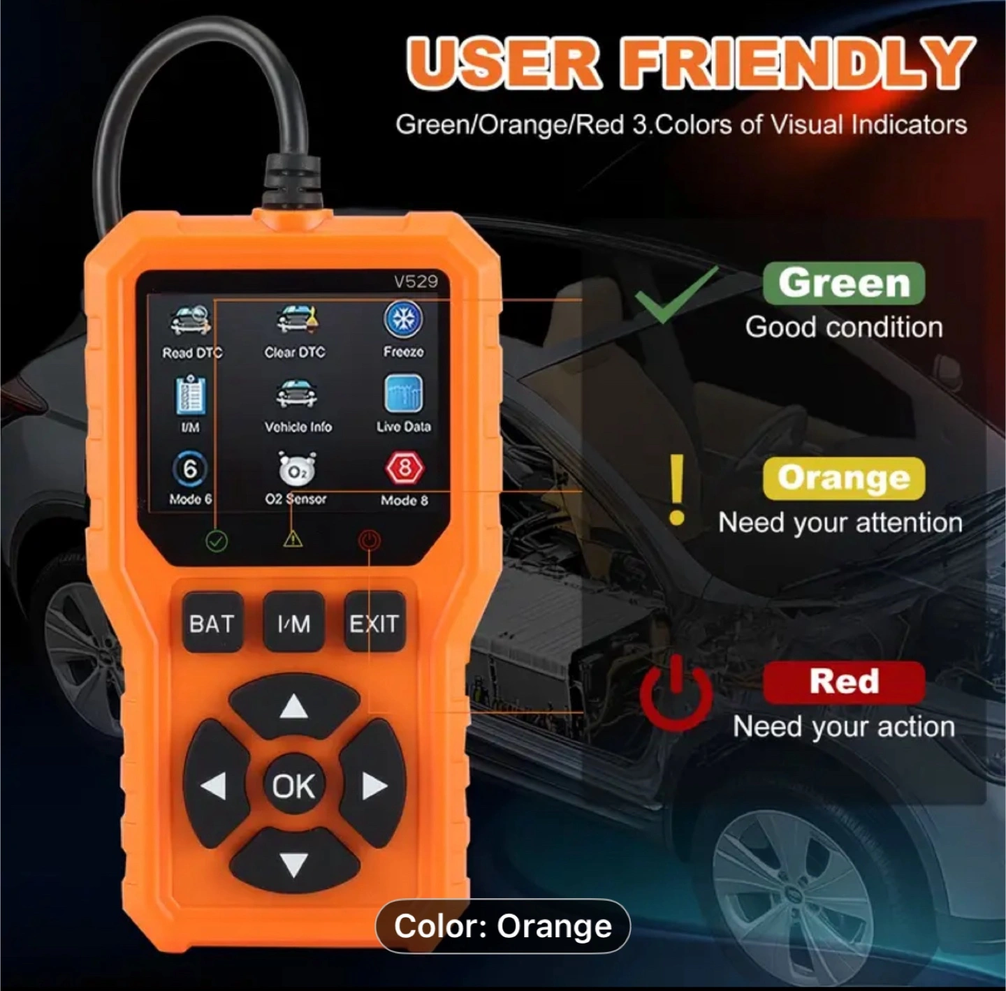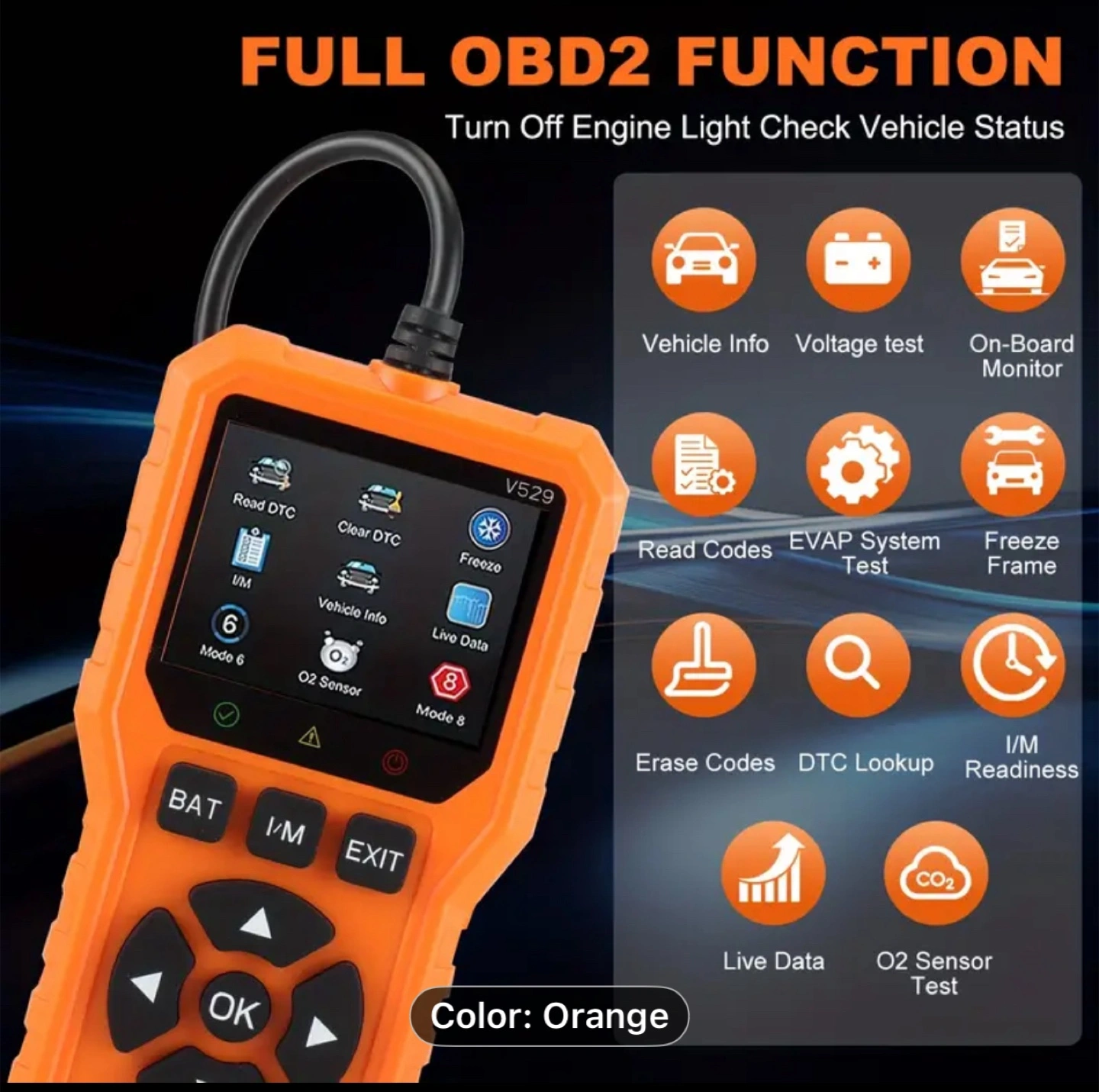 OBD2 Scanner Tool-Enhanced, Red and Black PVC Diagnostic Car Fault Code Reader, with Advanced Engine Fault Code Analysis, Instant Data Flow and Emission Test Functions, Without Battery