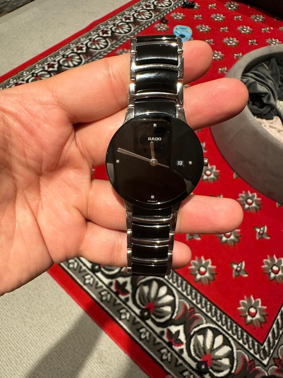 Selling a Rado Centrix watch in black. Purchased a few years back from Hudson’s Bay. It comes with its original box. The watch is barely used and in mint condition !