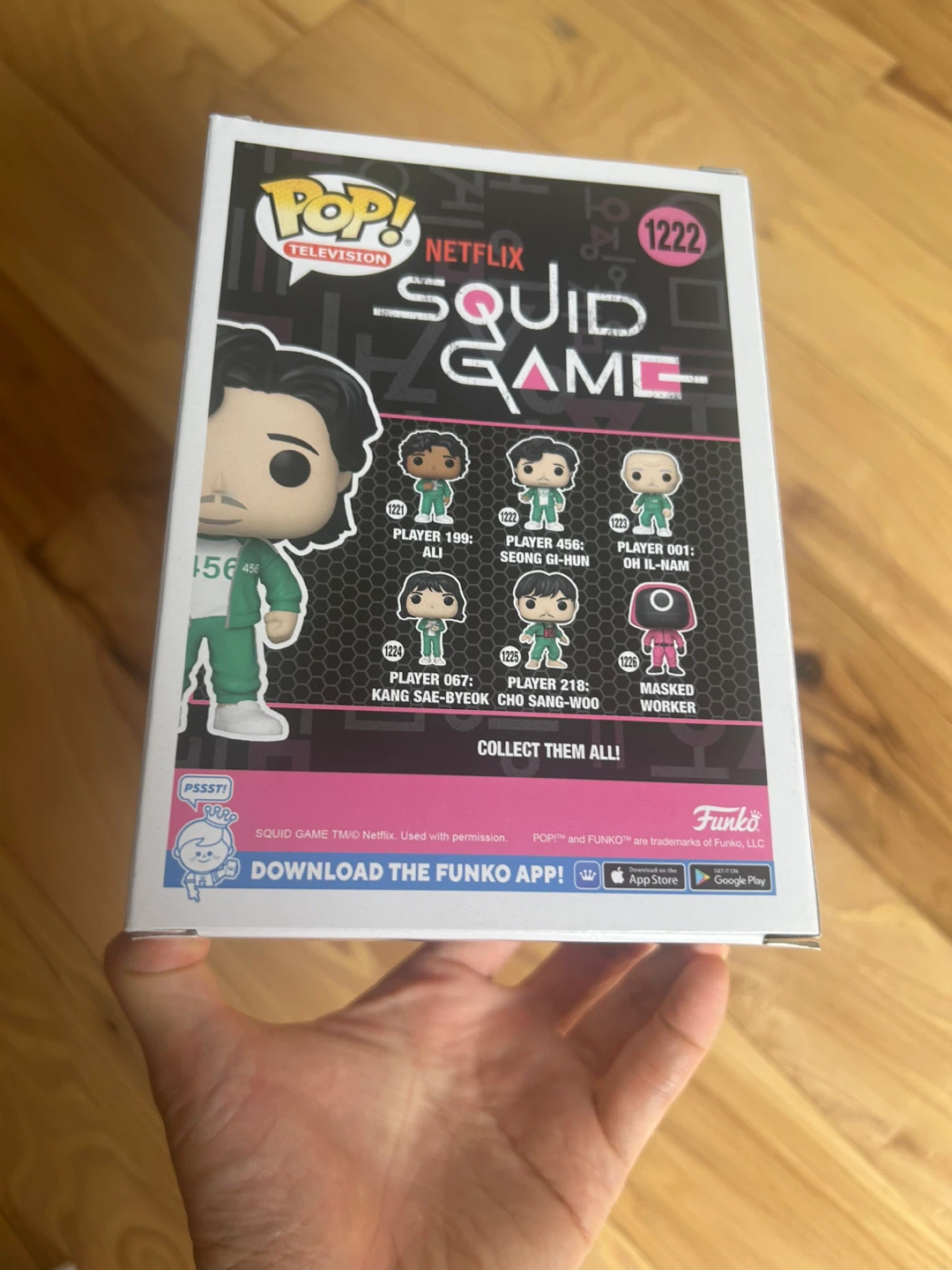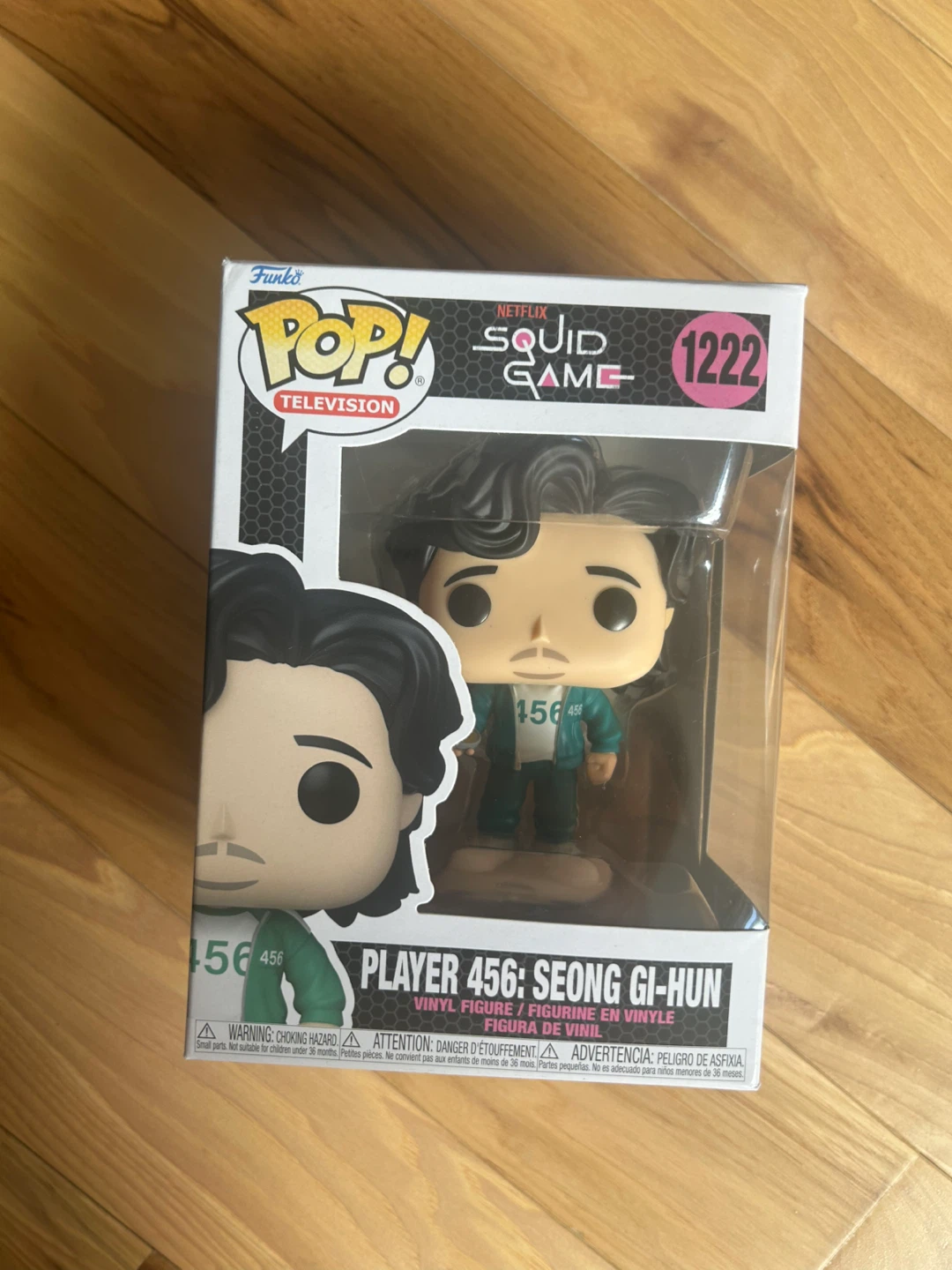 Selling a Funko Pop! Television figure of Seong Gi-Hun (Player 456) from the Netflix series Squid Game. This is figure number 1222 in the Pop! series. The figure is made of vinyl and comes in its original box