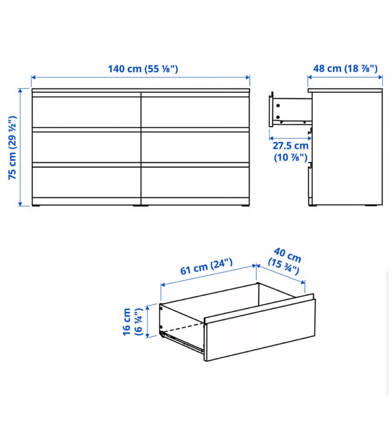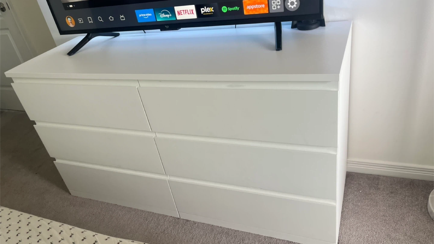 This IKEA STORKLINTA 6-drawer dresser in white is perfect for adding storage to any bedroom. It's used, but still in good condition with plenty of life left. Ideal for clothes, linens, or general storage. Smooth-gliding drawers make organization a breeze! Specifications: * Brand: IKEA * Model: STORKLINTA 6-drawer dresser * Colour: White * Condition: like new Spruce up your space without breaking the bank! This dresser is ready to go to a new home. Just a friendly reminder: if the ad’s up, it’s available!