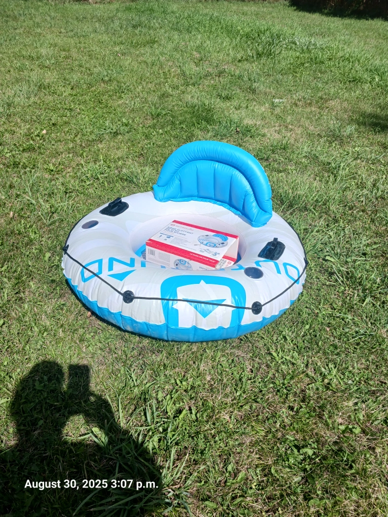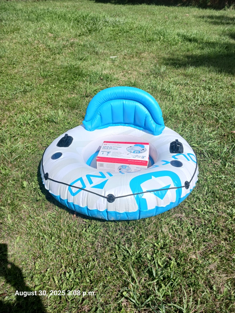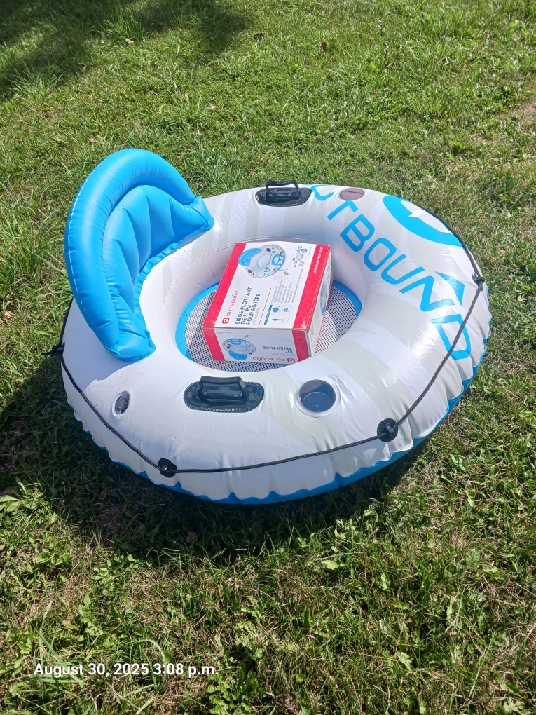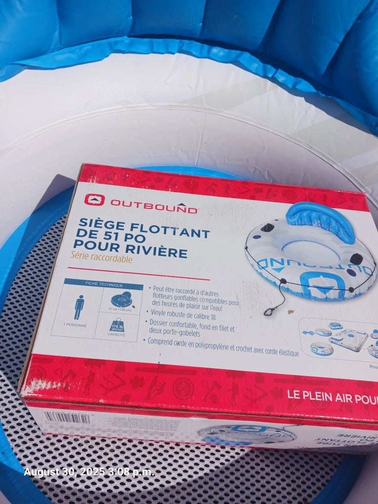 Get ready for some fun in the sun with this Outbound 51-inch floating river tube! It's perfect for relaxing on the water and enjoying the summer weather. The box mentions it can be attached to other inflatable floats for even more fun! It also features a comfortable backrest, a mesh bottom, and two cup holders. Ready for your next adventure!