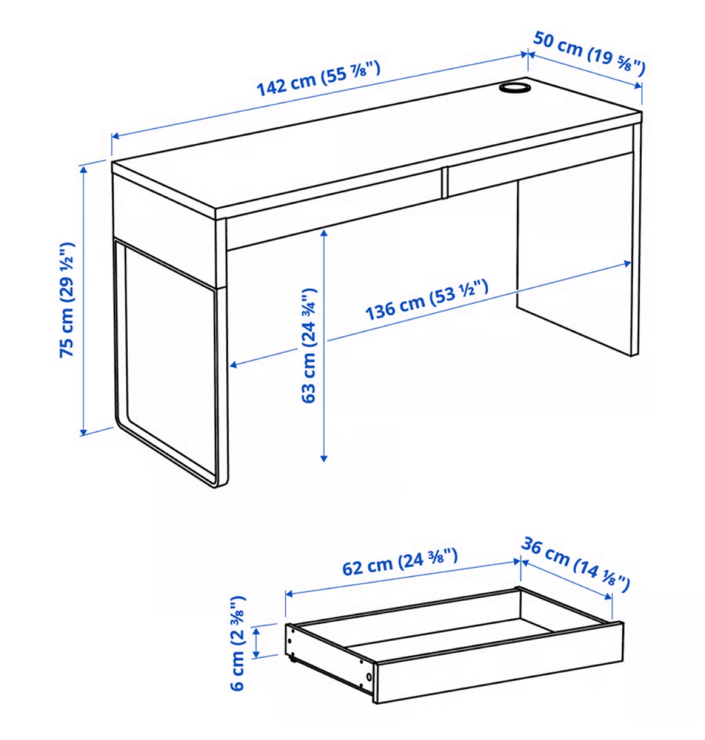 Looking to sell this IKEA desk in white! It's in great shape and has a very classic design with handy drawers for extra storage. Perfect for a home office or study space!