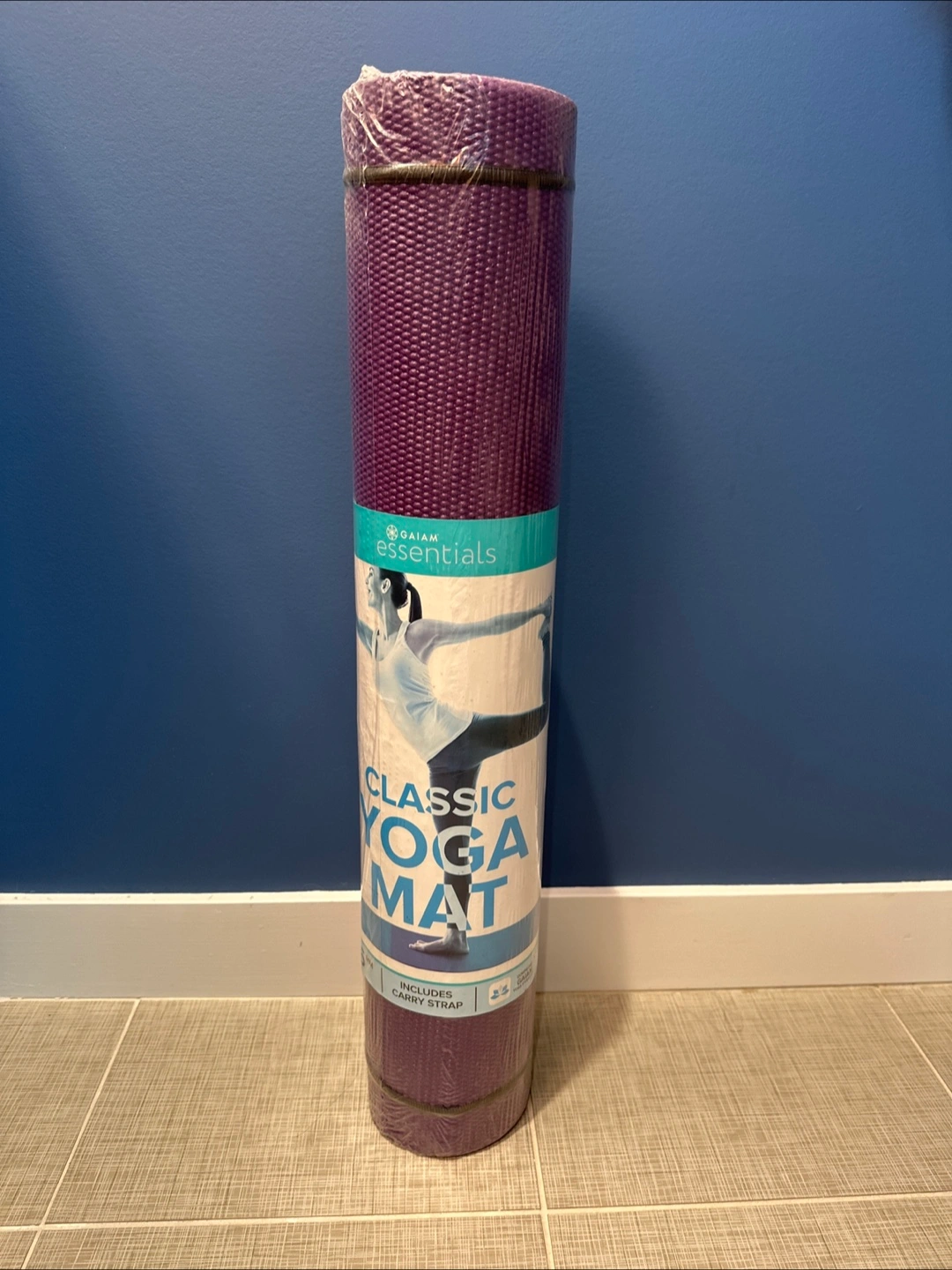 Brand new Gaiam Essentials Classic Yoga Mat. It's 6mm thick and includes a carry strap.
