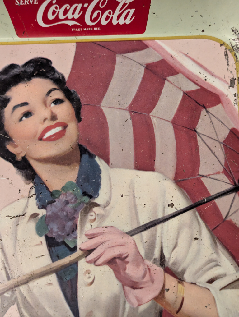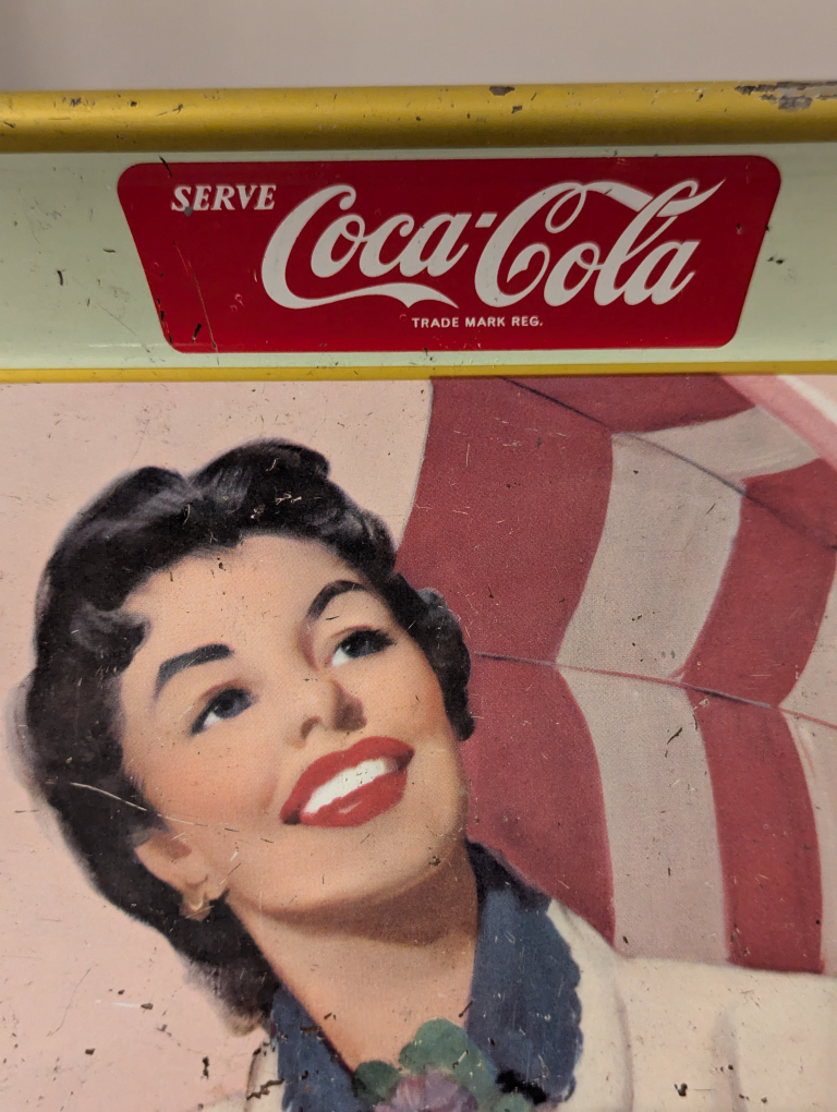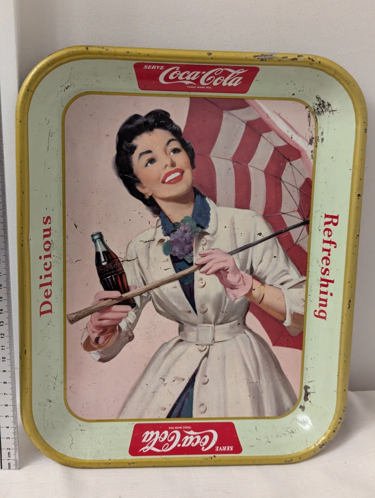 Selling a vintage 1957 Coca Cola Umbrella girl serving tray. This was the second tray I ever bought. Found in New York. There is some wear but this is still a great example of this tray that is much harder to find.