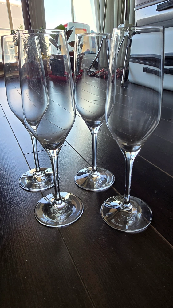 Brand New - All 4 x champagne glasses Selling a set of 4 Schott Zwiesel champagne flutes. They're in great shape and ready for your next celebration! Perfect for adding a touch of elegance to any occasion.
