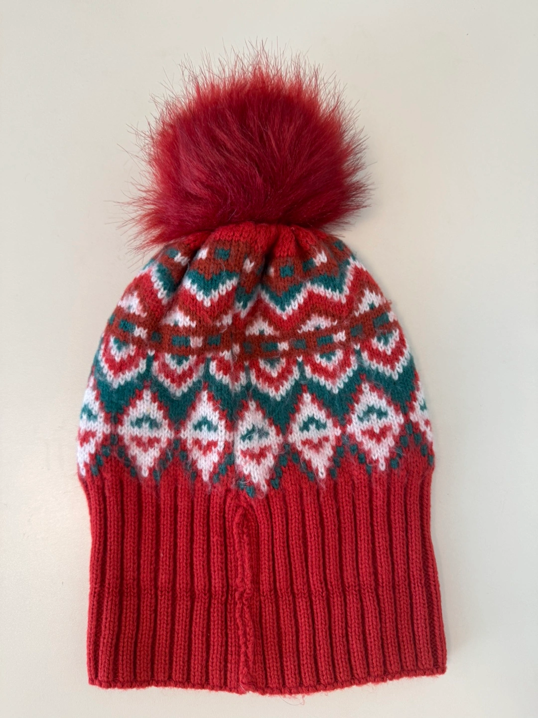 A cozy DeFacto beanie in a lovely Bordeaux colour. It's a standard size and features a fun pompom on top! Perfect for keeping warm during the colder months