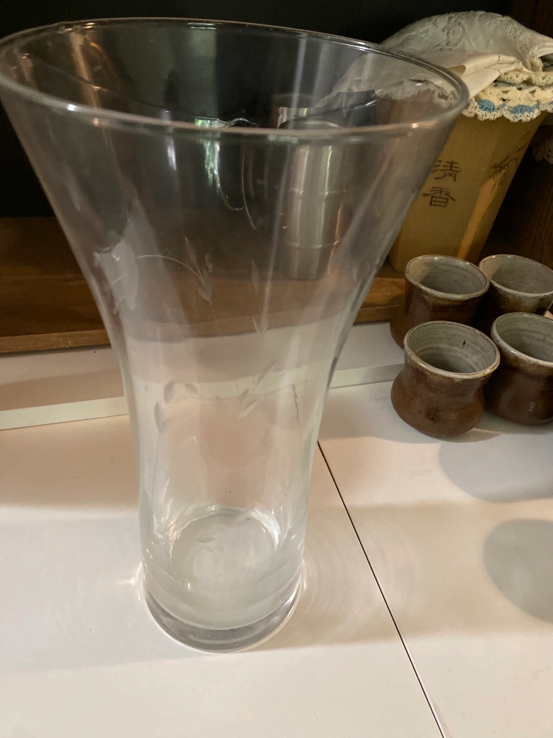 Selling a clear crystal flower vase, by Princess House. It's in great shape and ready to display your favourite blooms! Etched patterns on outside of the vase. 11 1/2” T, 4@ across at base Moving Sale Pick up only