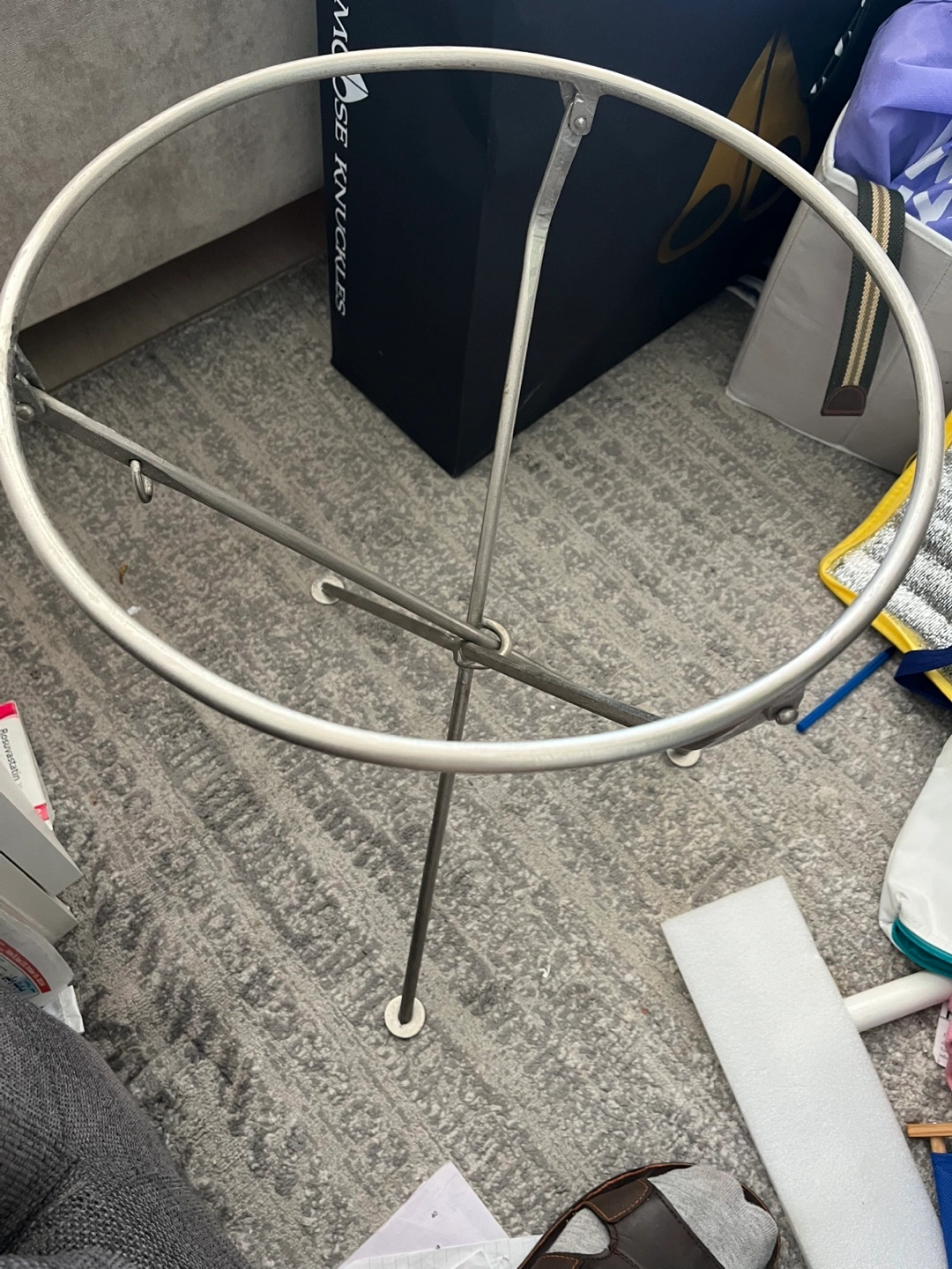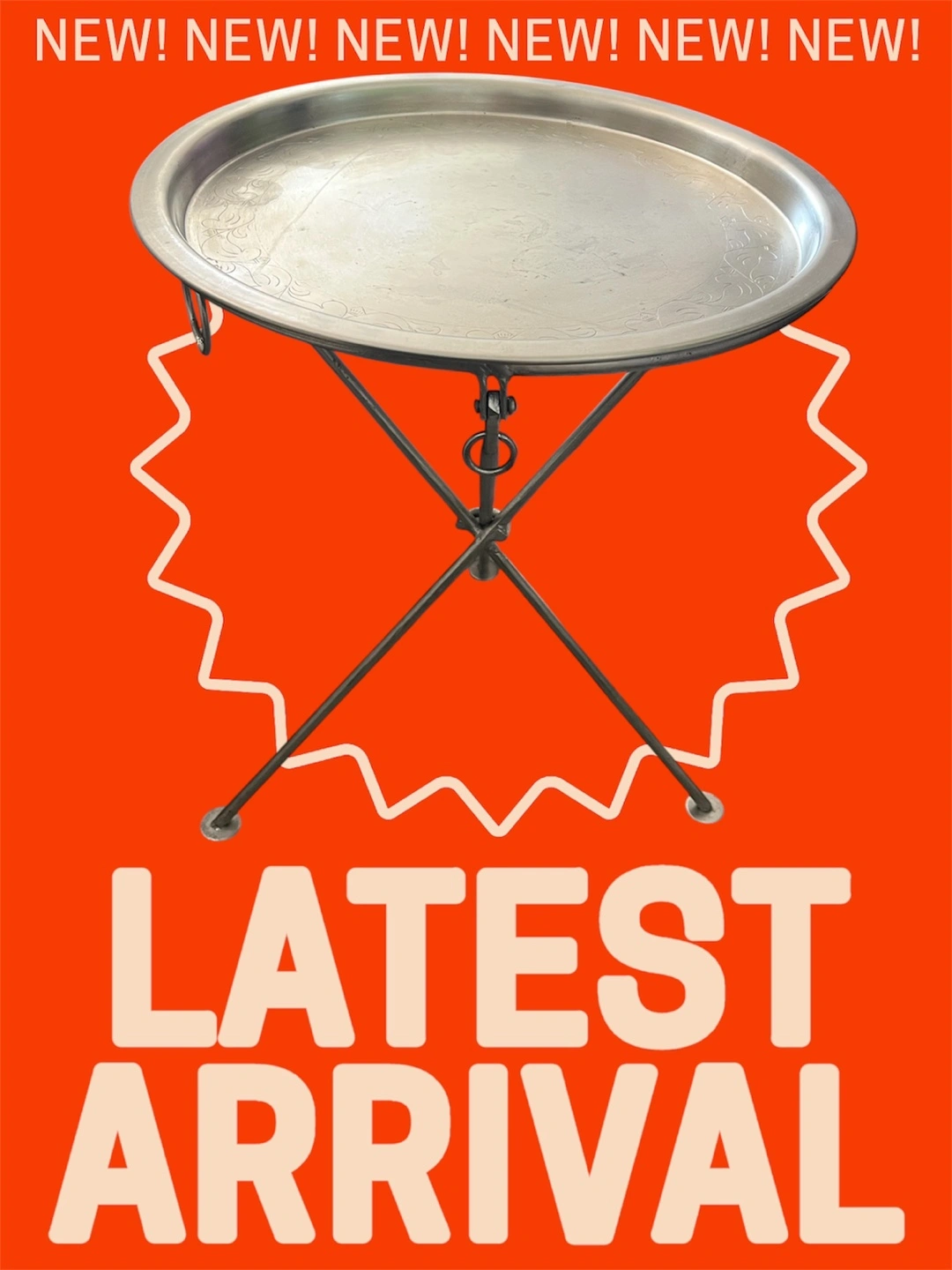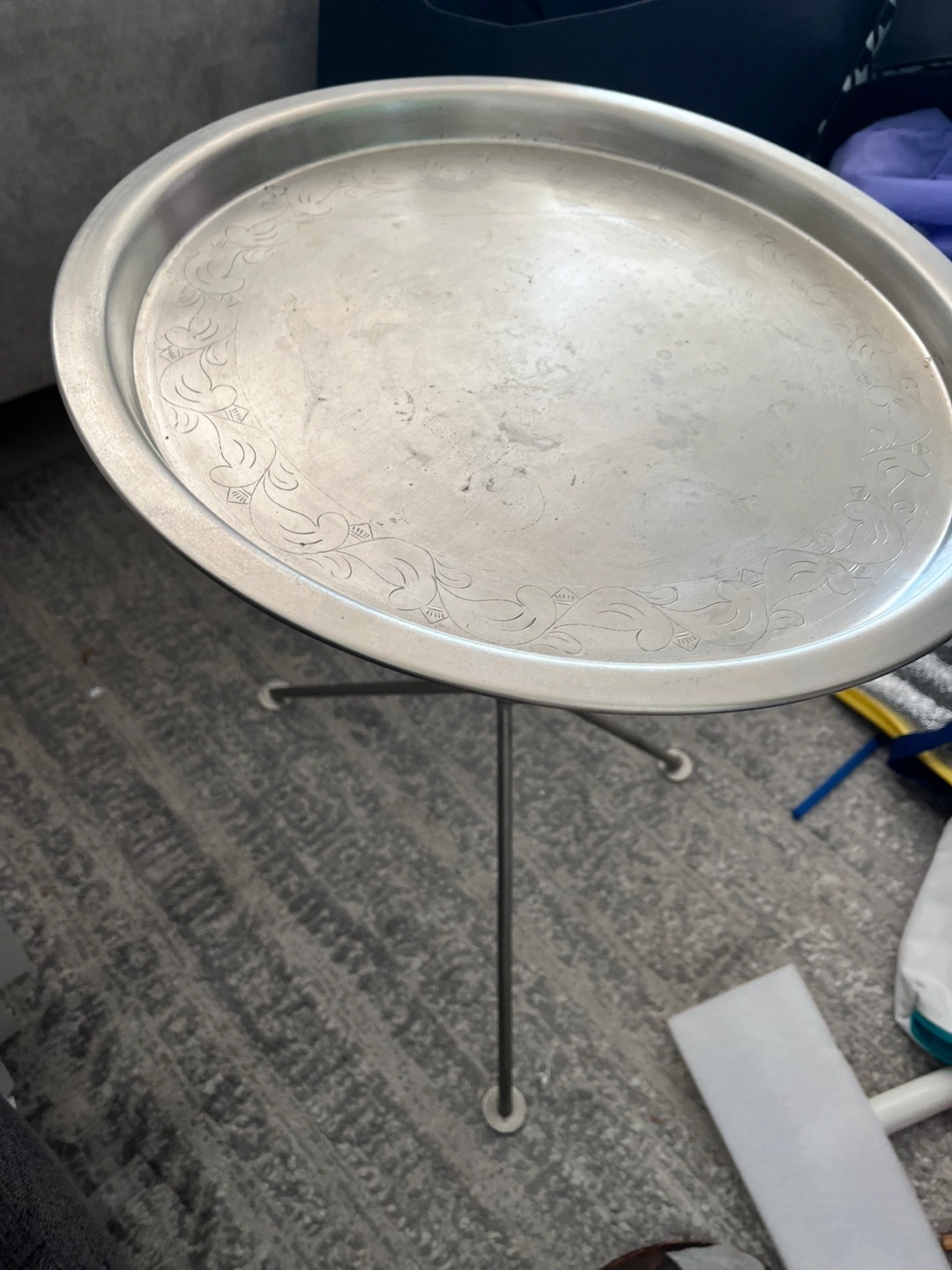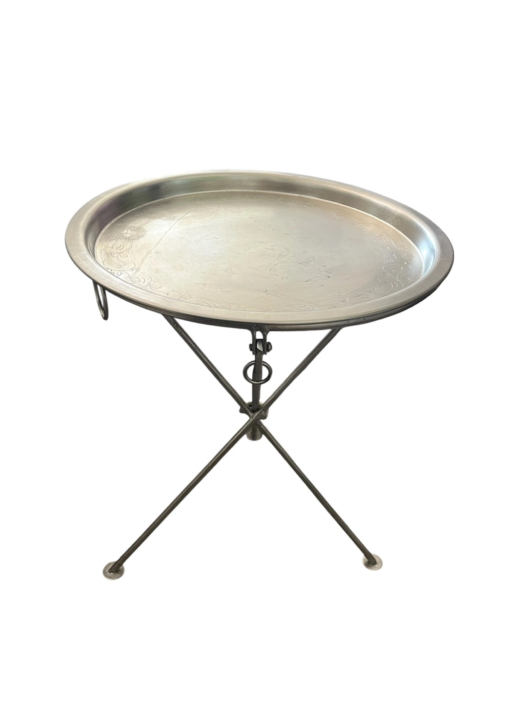Selling a brand new silver metal round folding tray table! It's in perfect condition and ready to add a touch of elegance to your space! The folding design makes it easy to store when not in use