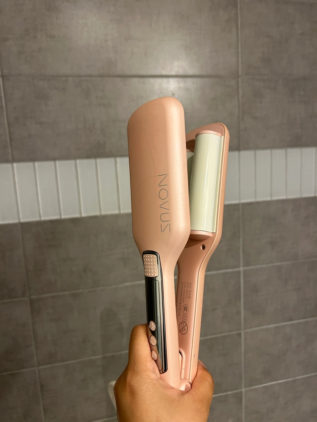 Selling a NOVUS Hair Waver Curling Iron, 2-Barrel Ionic Hair Curler with different Heat Settings, Beach Waves Crimper for Women, Travel-Friendly,Fast Heating, Easy to Use, Pink