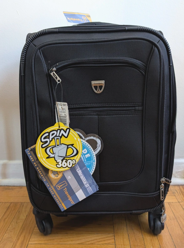 Brand new Travelpro Ultralite II 20" expandable carry-on suitcase! It's black and has the tags still attached.