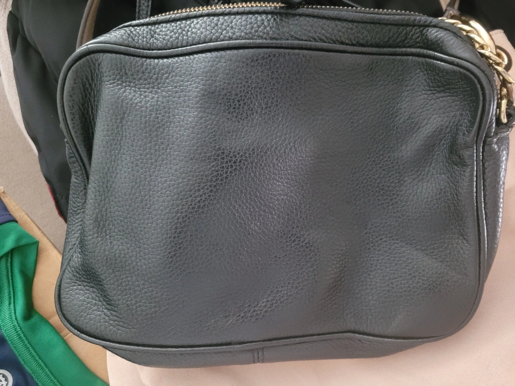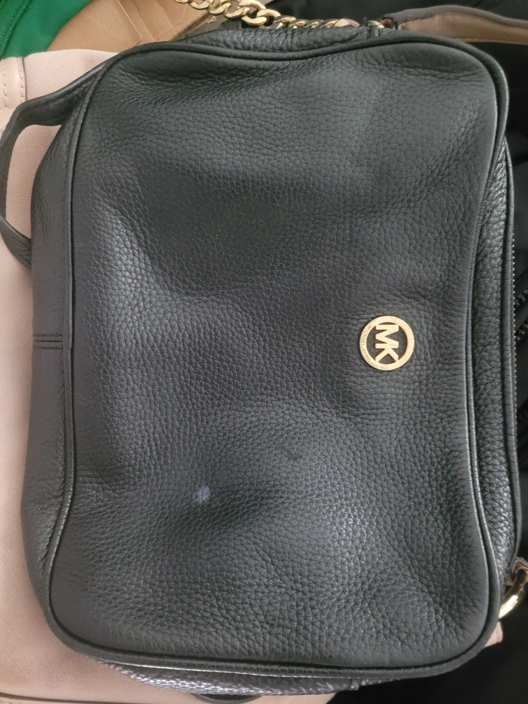Selling a gently used Michael Kors crossbody bag in black leather. It has a gold-tone chain detail and the classic MK logo. Perfect for everyday use!