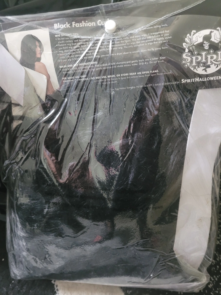 Selling a new Spirit Halloween Black Fashion Curls wig! It's still in the original packaging. Perfect for Halloween or costume parties! The wig is black and features fashionable curls.