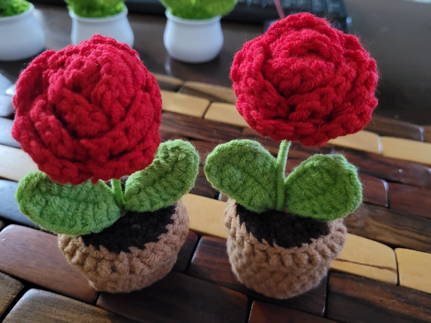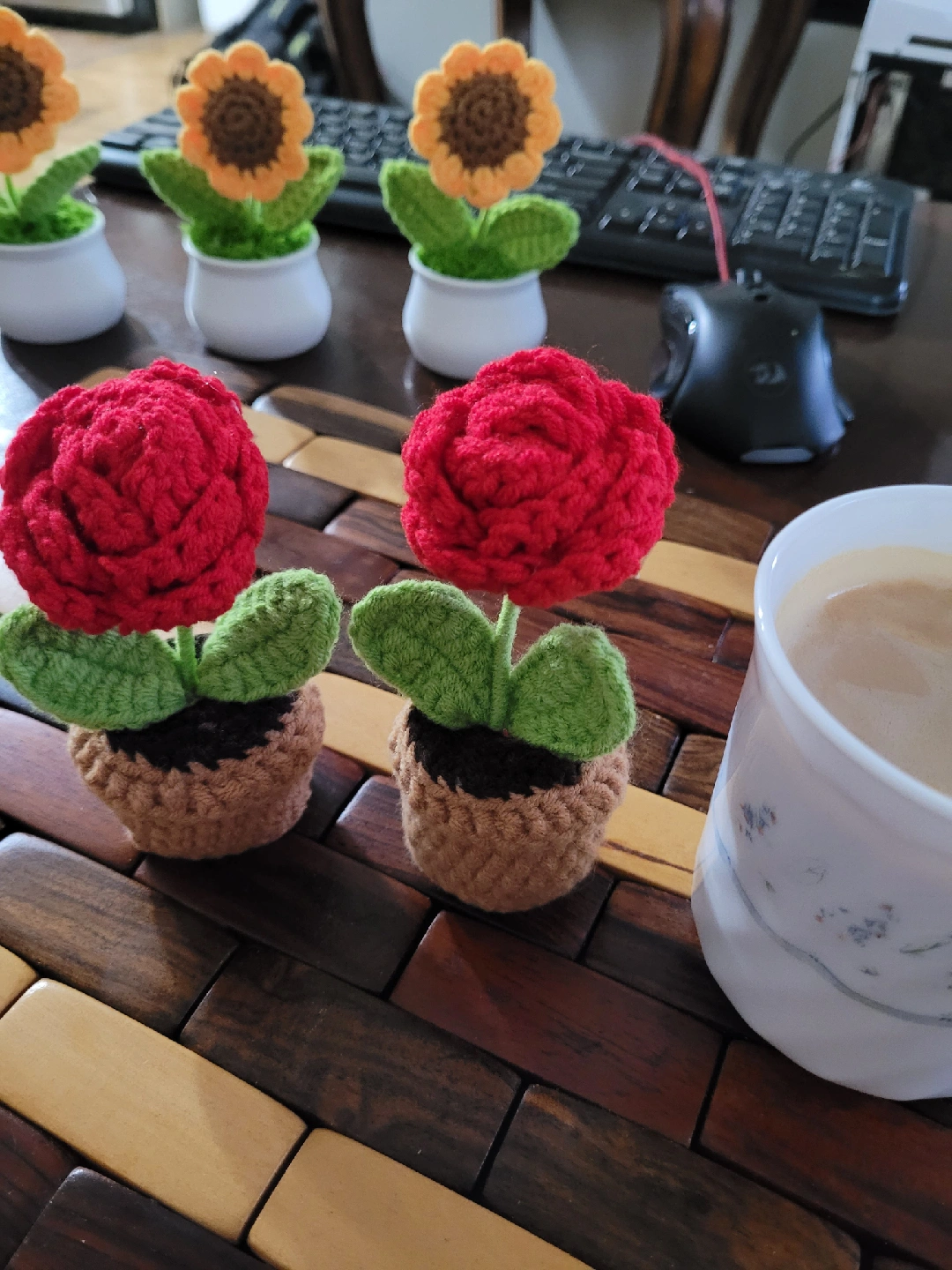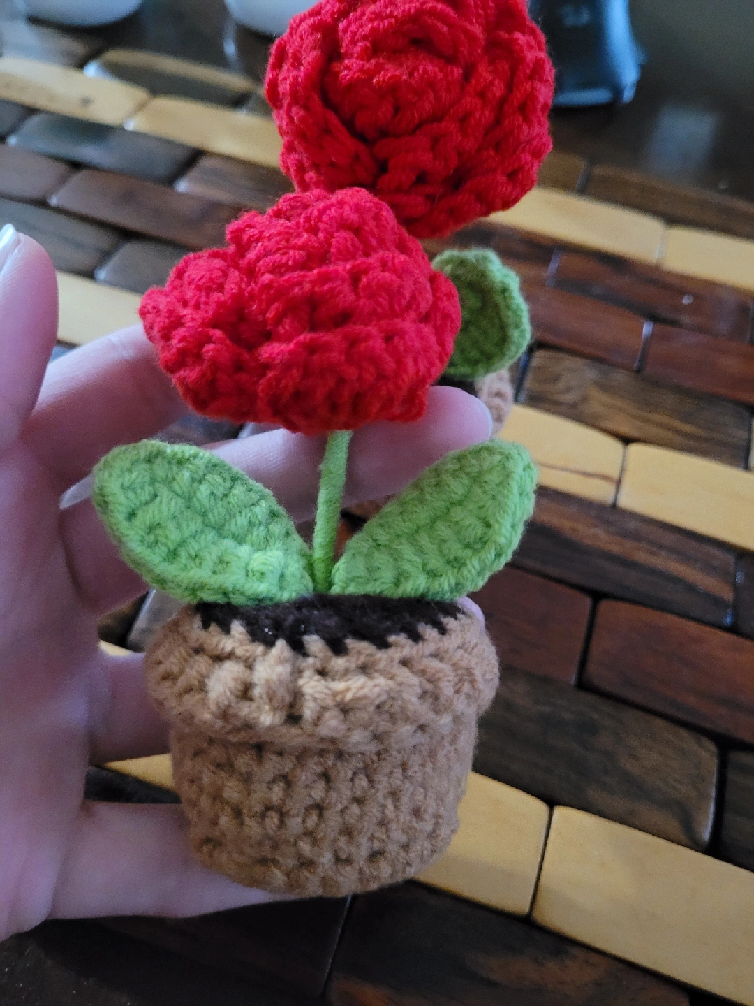 22A cute little crocheted rose in a pot! Perfect for adding a touch of charm to any space!