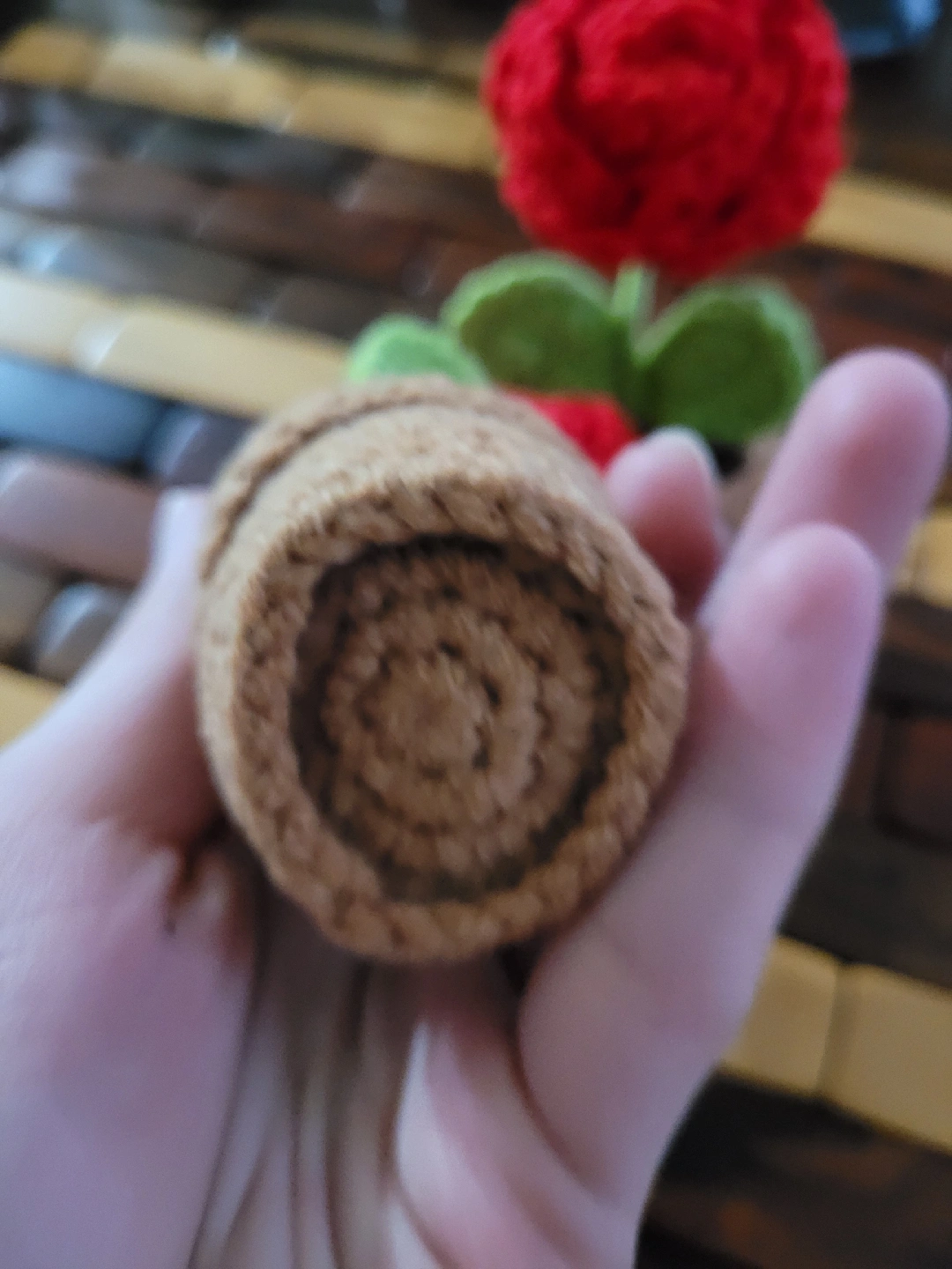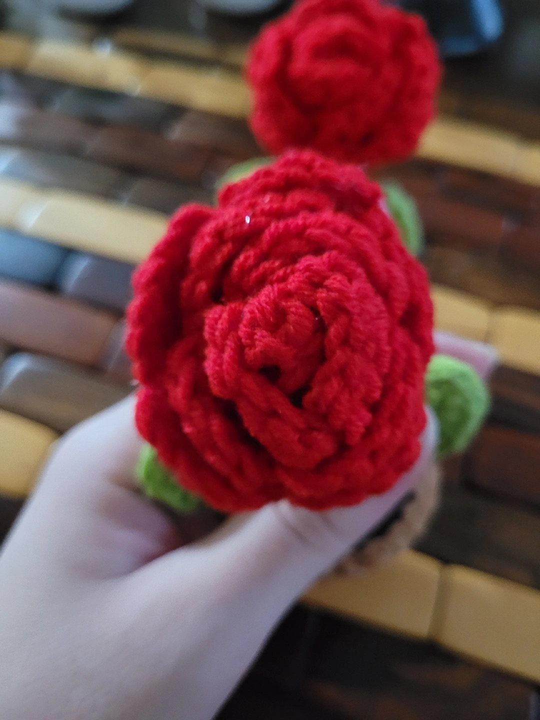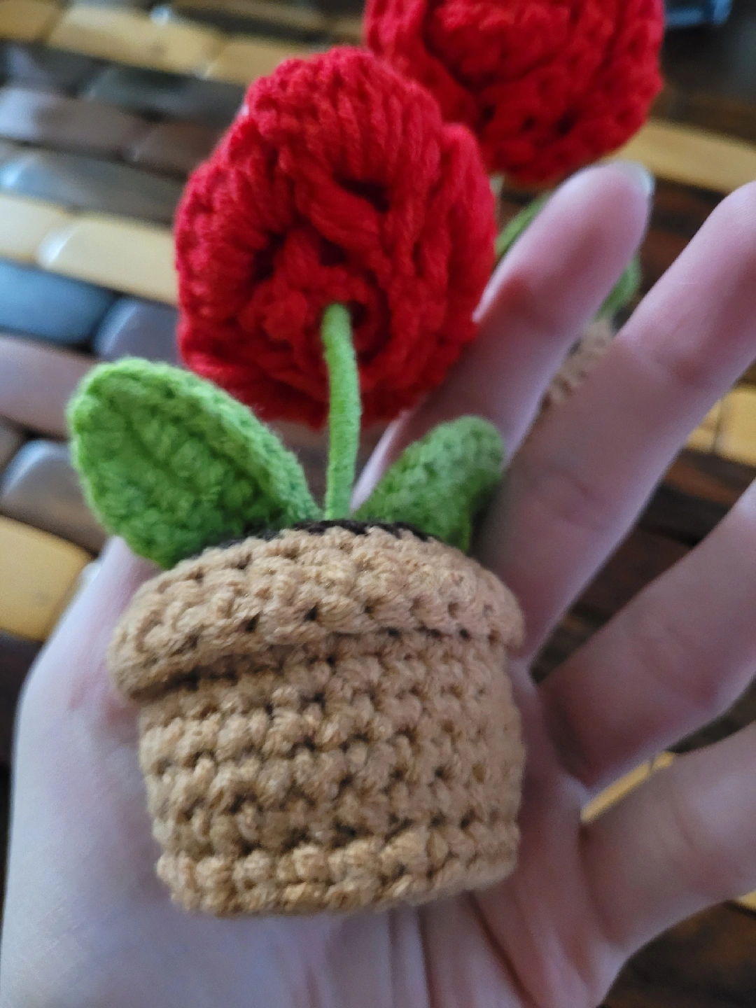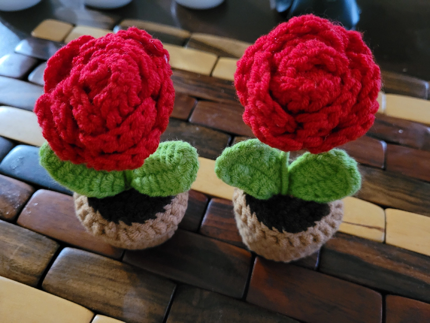 22A cute little crocheted rose in a pot! Perfect for adding a touch of charm to any space!