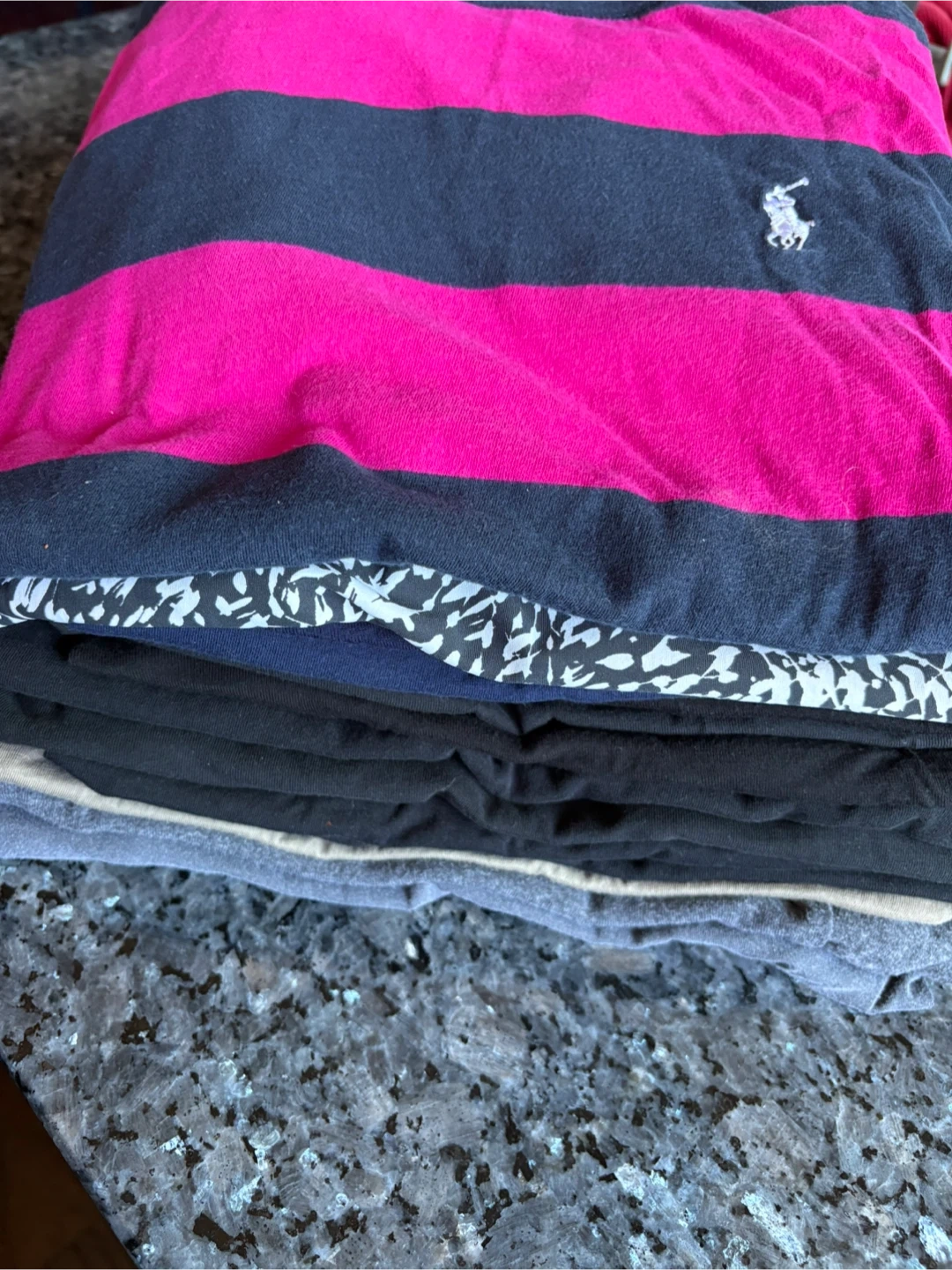 Colours: mostly black, navy, olive, grey, black & white pattern and pink & navy stripe