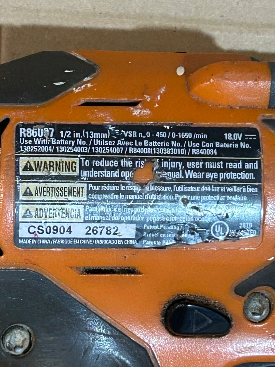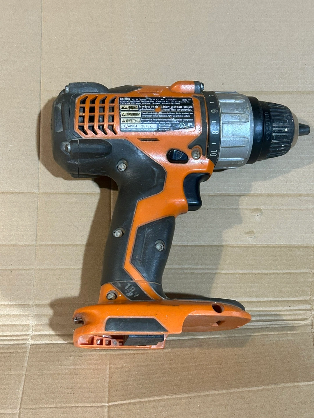 Selling a Ridgid 1/2 inch (13mm) cordless drill. It operates at 0-450 / 0-1650 / min and uses an 18V battery. It shows some signs of use, but is in great working condition!