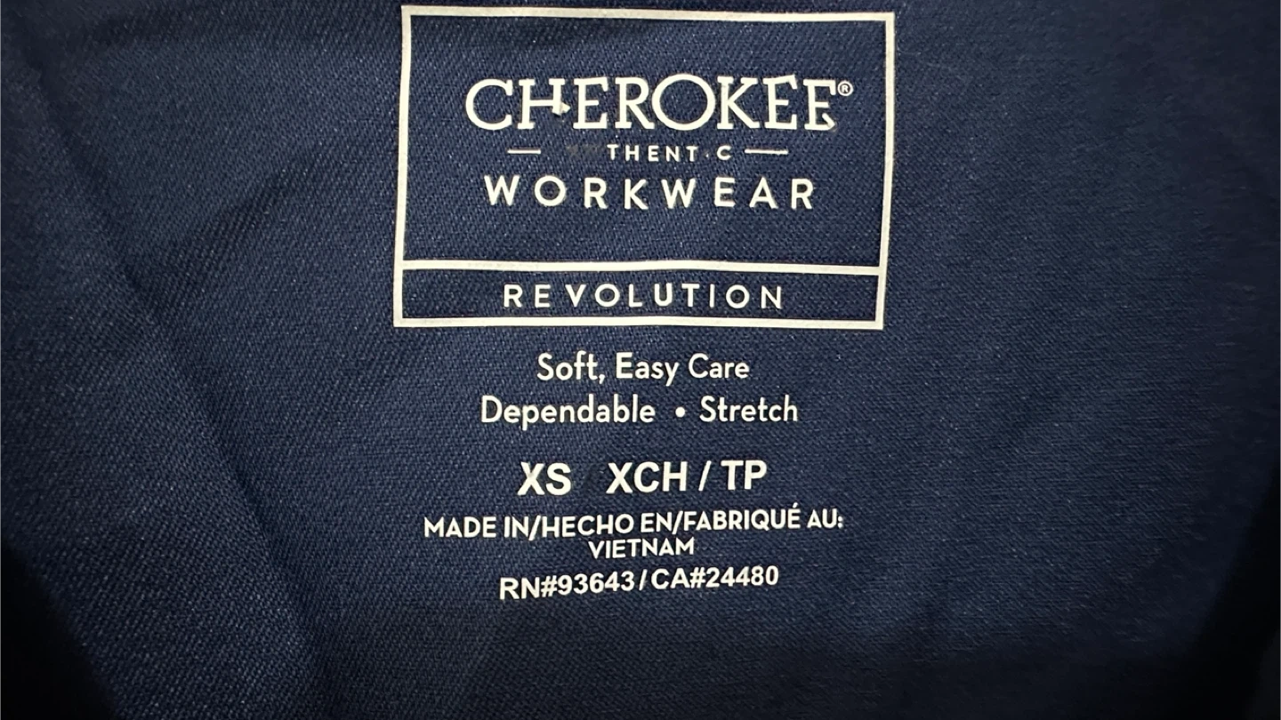 Selling a Cherokee Revolution Workwear scrub top in size XS. It's a stretchy top, perfect for work. Soft and easy to care for!