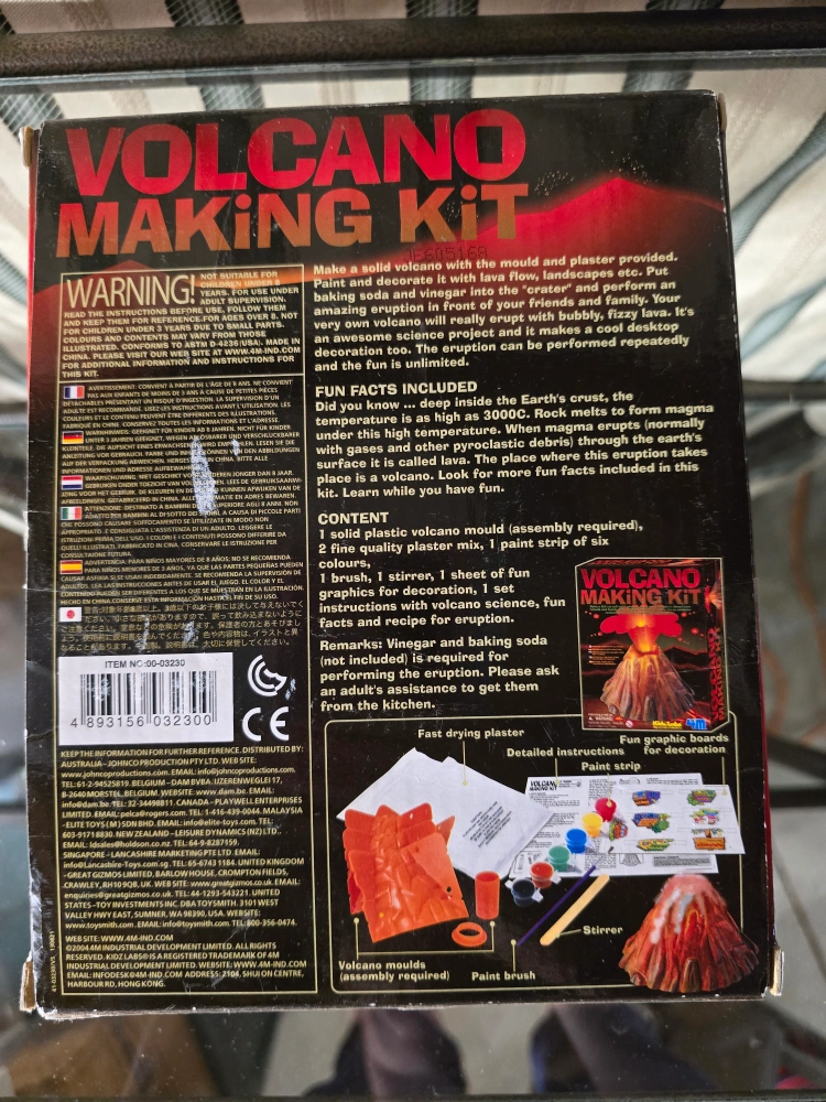 Get ready to erupt with fun! This 4M KidzLabs Volcano Making Kit lets you create a 9.5 cm tall solid volcano that you can paint and decorate. It's an awesome science project and a cool desktop decoration. Perfect for ages 8 and up, this kit includes everything you need to make your own bubbling lava eruption. The fun is unlimited!