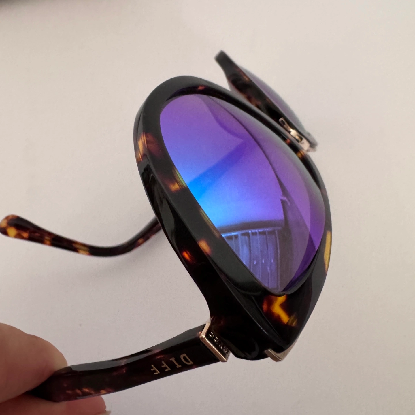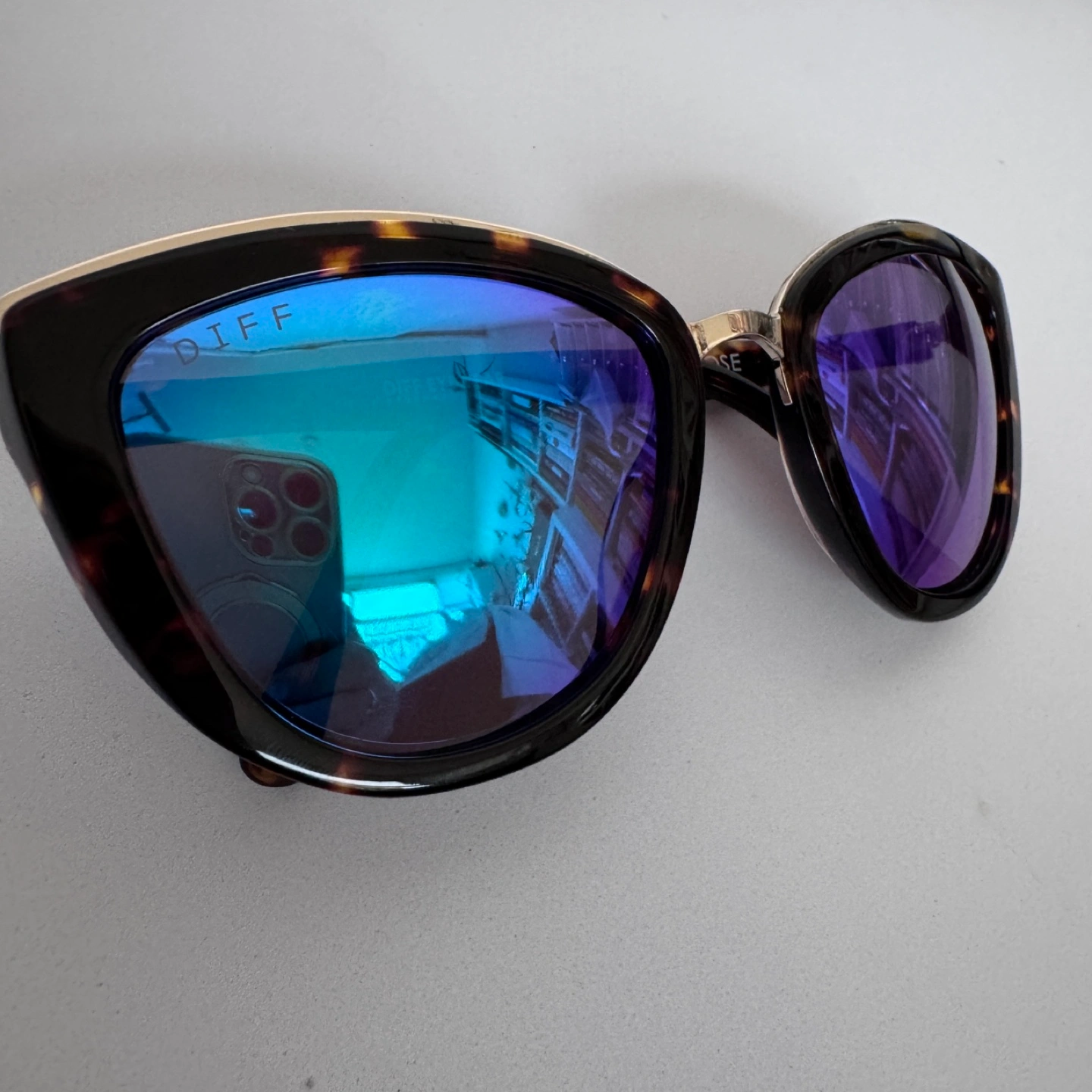 122Selling a pair of DIFF Eyewear sunglasses. They feature a tortoiseshell pattern with gold accents. Great for adding a touch of style to any outfit!