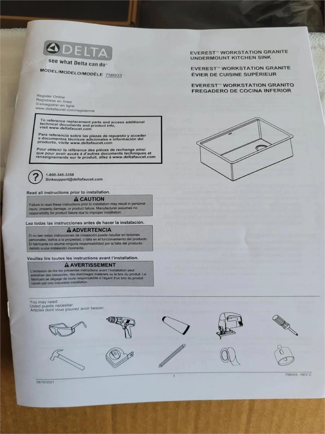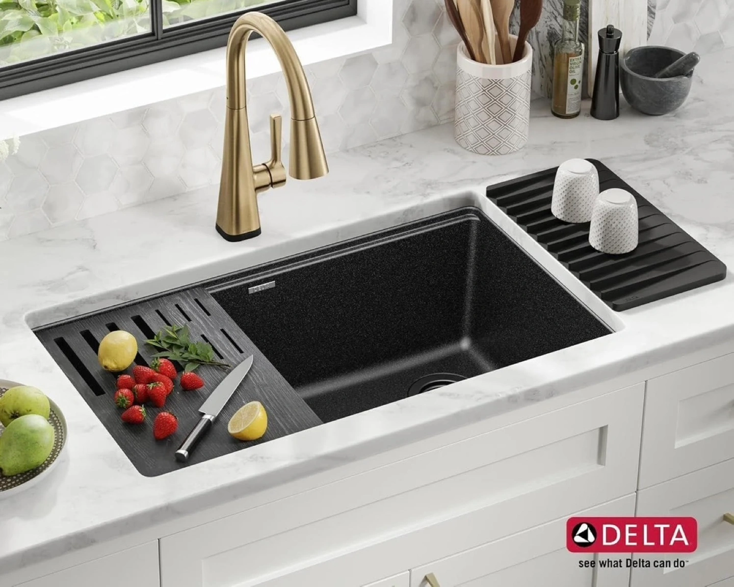 Delta Everest 32” Granite Composite Workstation Kitchen Sink, Undermount - Black. New in Box. $450 firm