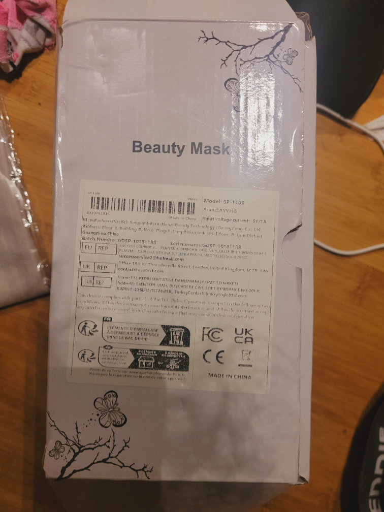 Selling an Ayyhg Beauty Mask, model SP-1100. It comes with its original box. Input voltage current: 5V/1A. brand new. 8 colors for many skin conditiond