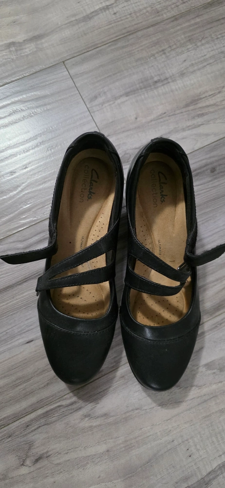 Selling a pair of Clarks Collection shoes in black. They feature a strap and a comfortable design. Perfect for everyday wear!