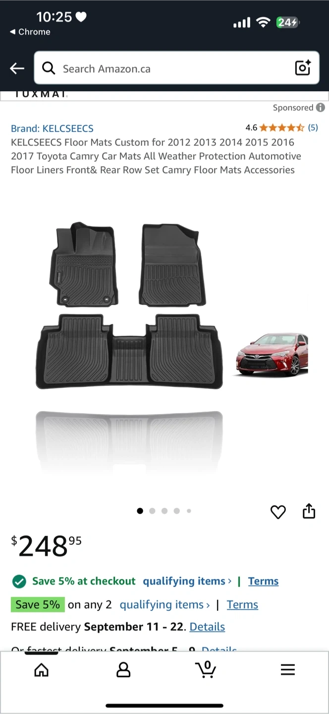 Selling a set of KELCSEECS floor mats custom-fit for the 2012-2017 Toyota Camry! These are all-weather protection automotive floor liners for both the front and rear rows. Originally bought for $248.95
